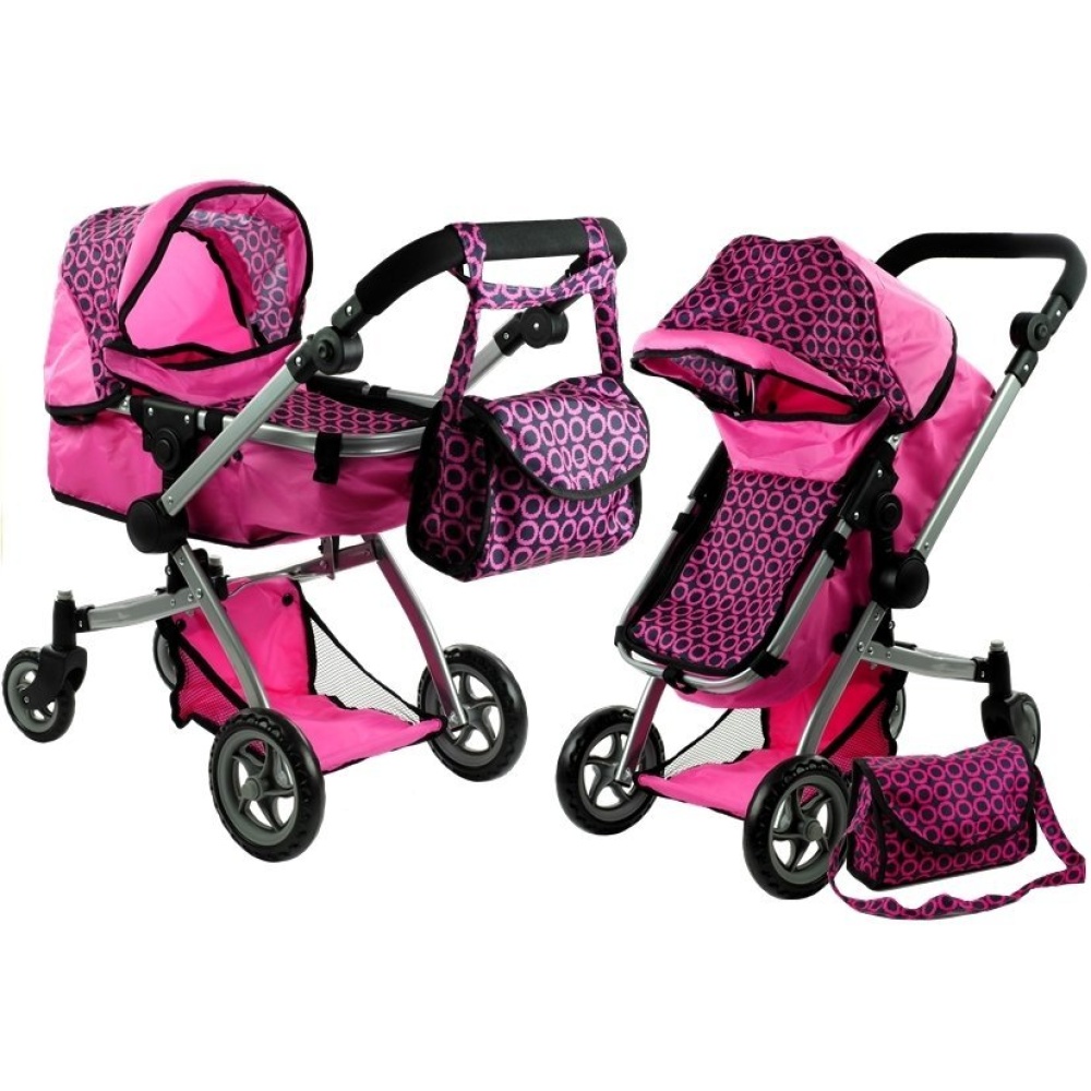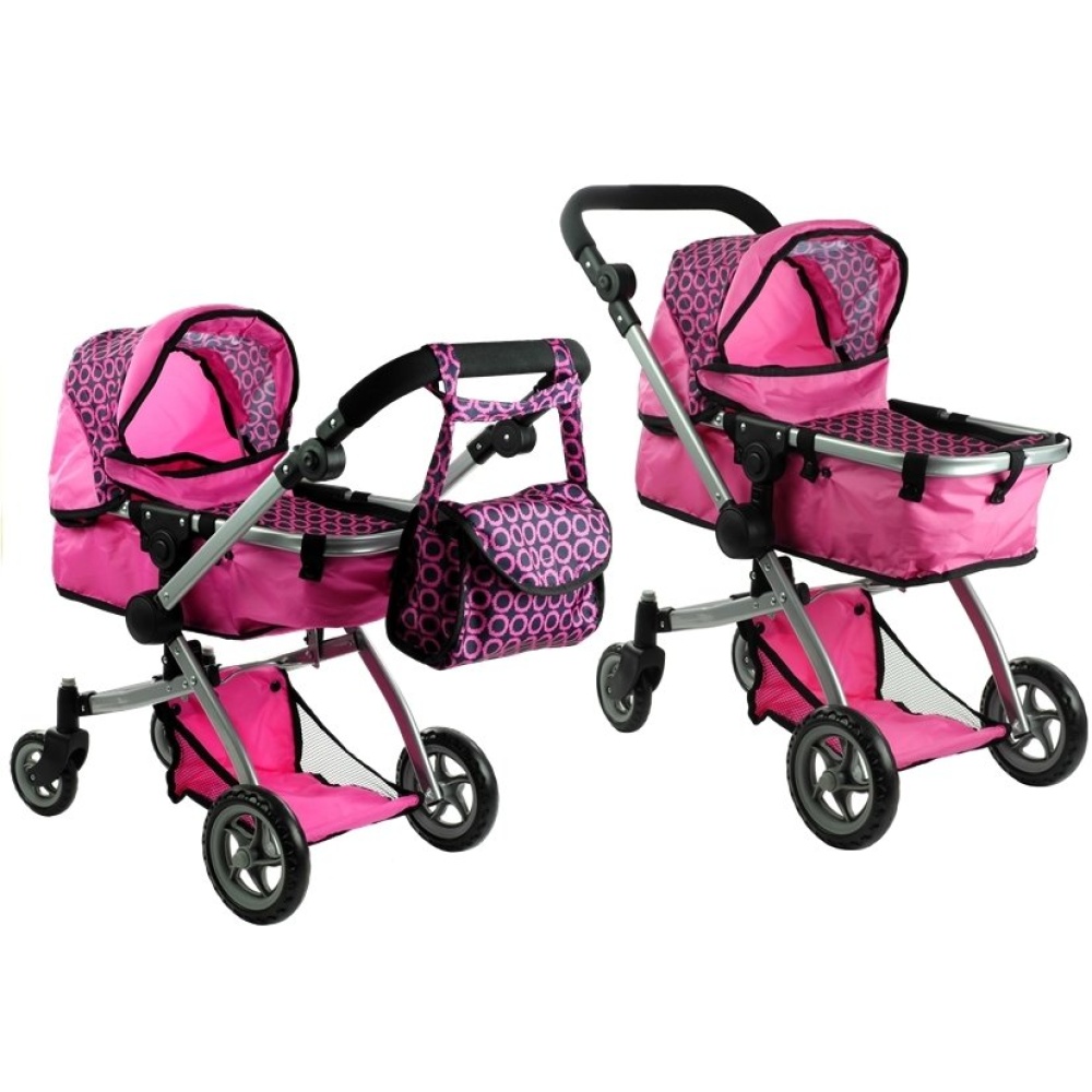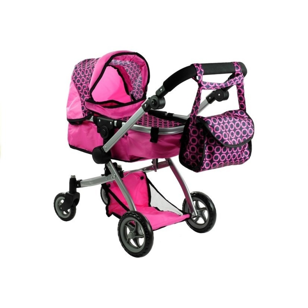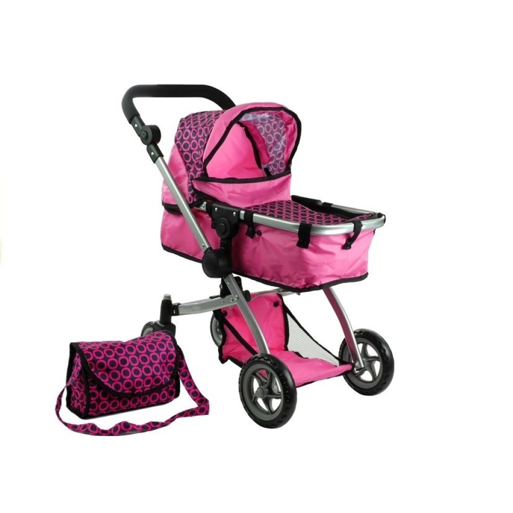 Dječja kolica za lutku 2u1 Alice – roza s točkicama