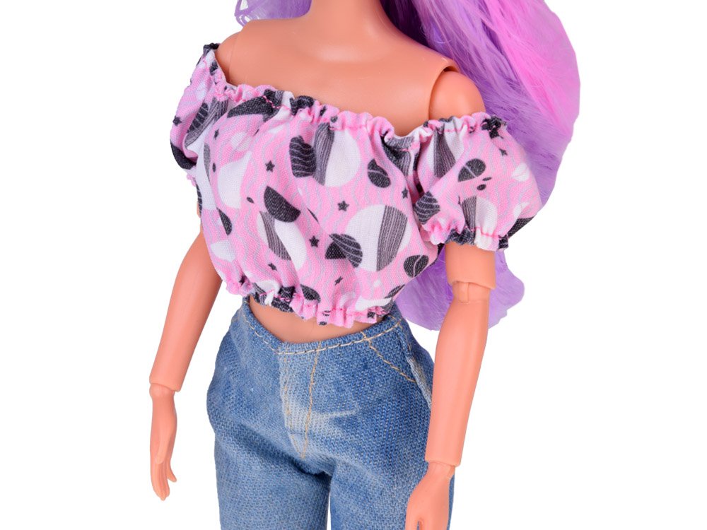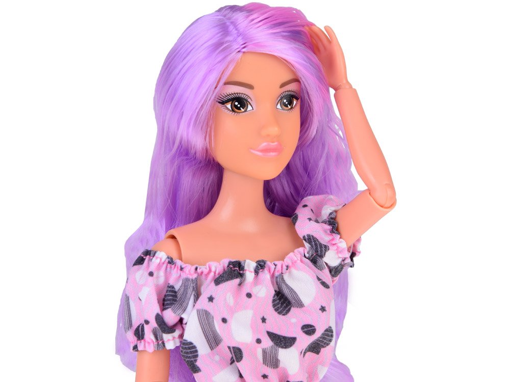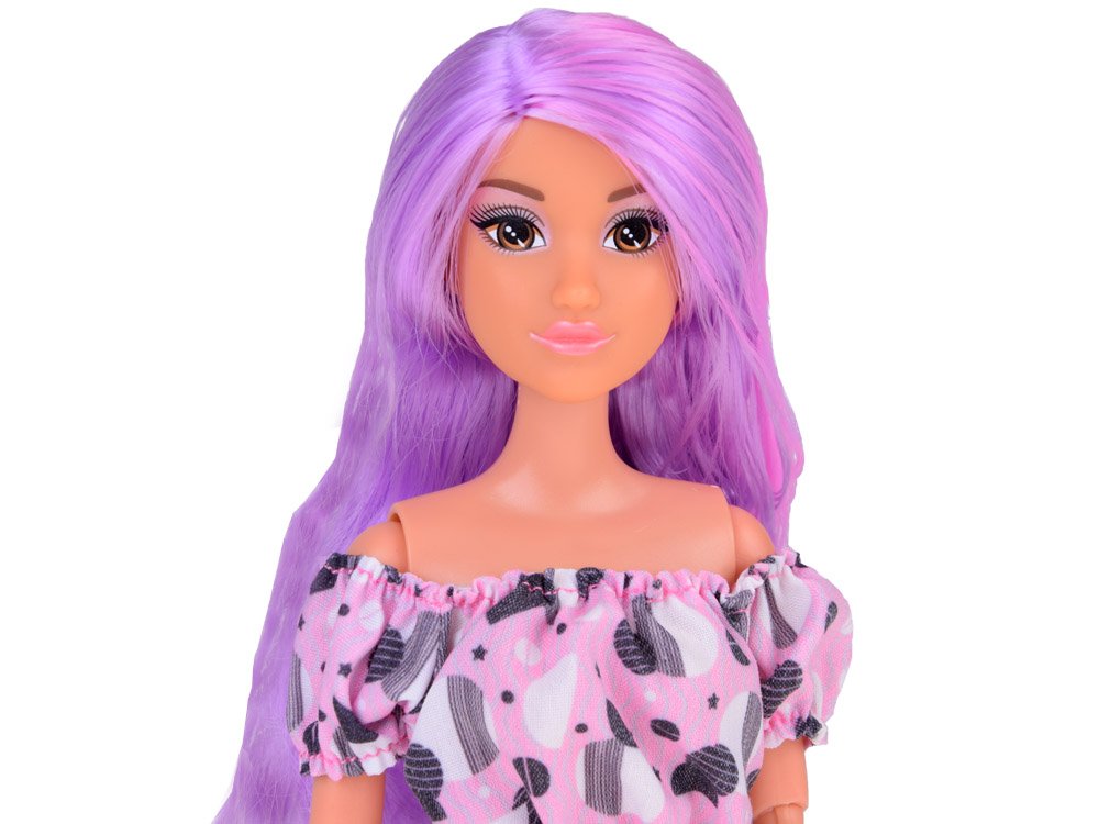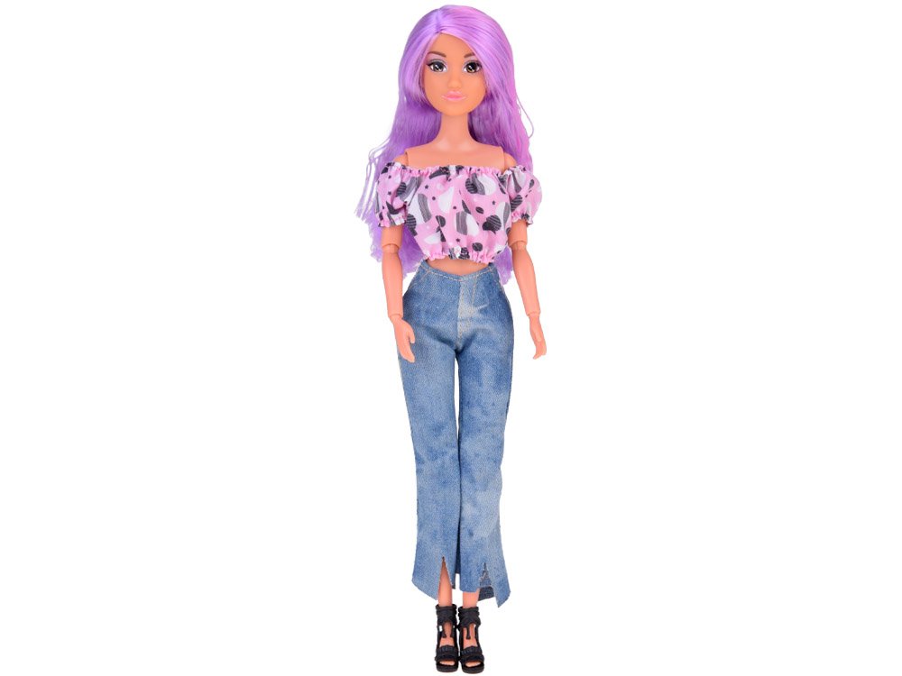 Anlily lutka duge pastelne kose u trapericama svidjet će se svakoj djevojčici. Lutka ima prekrasnu dugu ljubičasto-ružičastu kosu koja lijepo ističe njene velike smeđe oči pastelnom šminkom. Lutka je odjevena u ružičastu bluzu s crno-bijelim uzorcima i bezvremenske, duge traperice. Cijeli stil dodaju crne cipele na visoku petu. Takva lutka je odraz pravog tinejdžera. Svaka djevojka koja voli modu i šarene uzorke razveselit će ga imati u svojoj kolekciji. Lutkini su udovi pomični, a lice joj blista.
