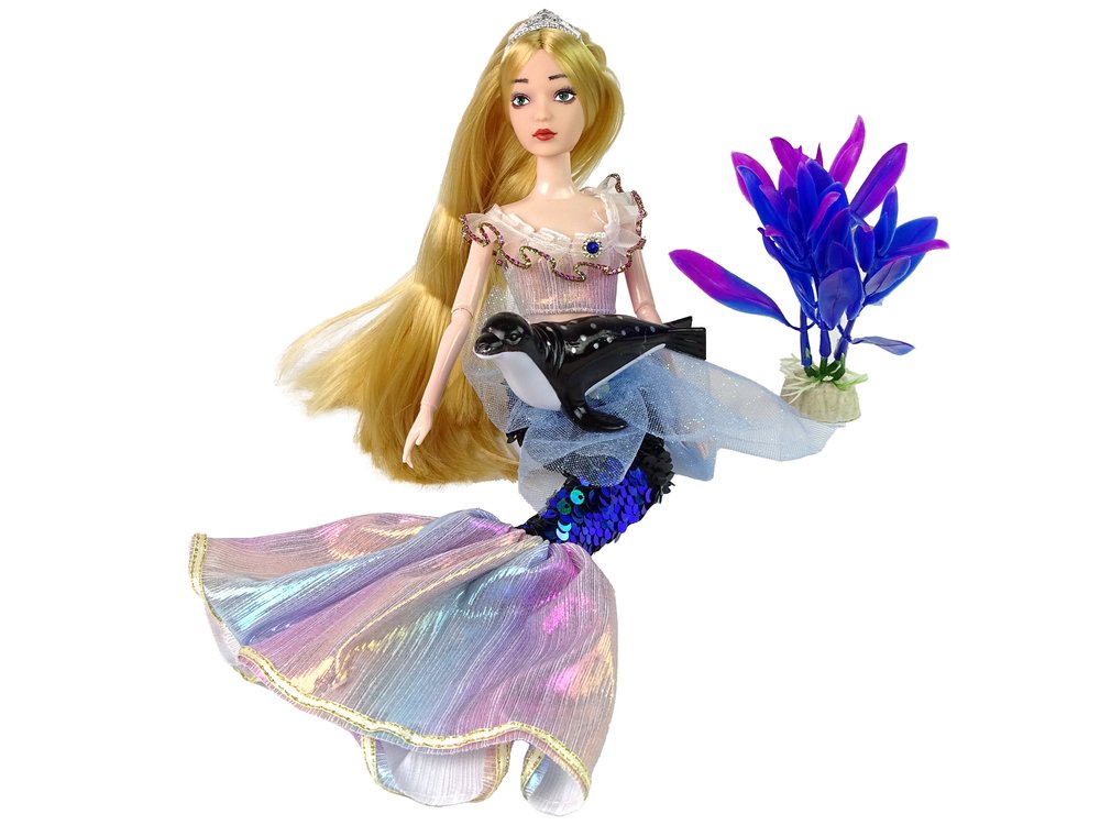 Pozdravite lutku sirenu Emily dok vas poziva u čarobni svijet podvodnih avantura! Ova preslatka lutka ima dugu plavu kosu i zelene oči, a na glavi joj blista tijara koja naglašava njezinu jedinstvenost. Njezin rep – svjetlucave šljokice u nijansama zelene i ljubičaste dodaju šarm, a mogu se i protrljati da postanu tamnije za fascinantan učinak. Iznenađenjima tu nije kraj – rep se također može ukloniti i s lutkom se možete igrati kao s običnom lutkom tako da je postavite na noge.