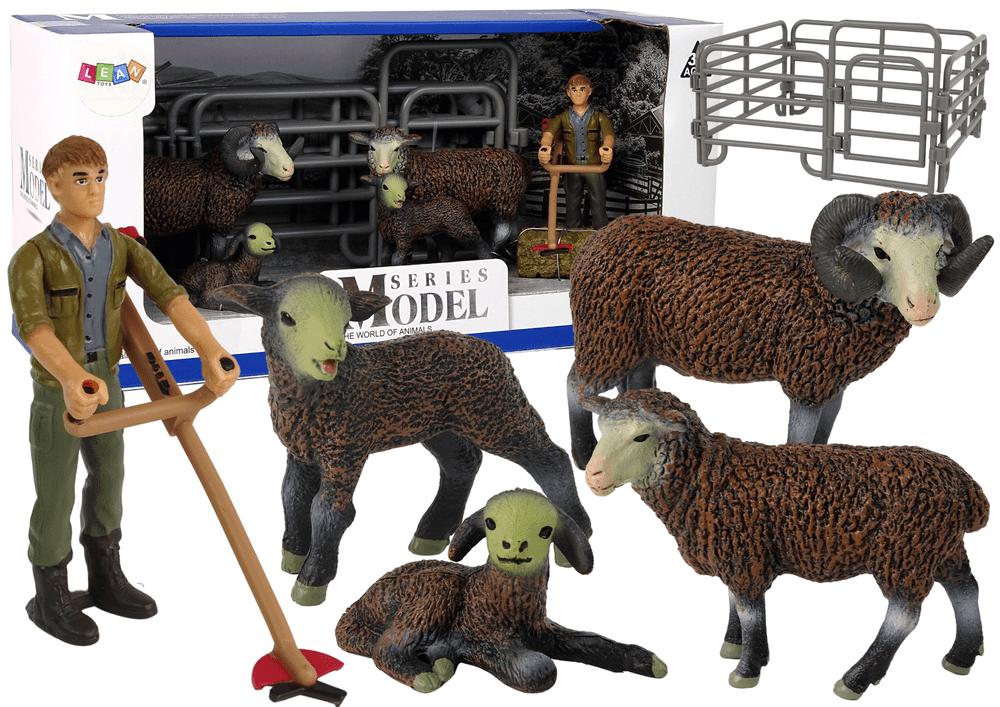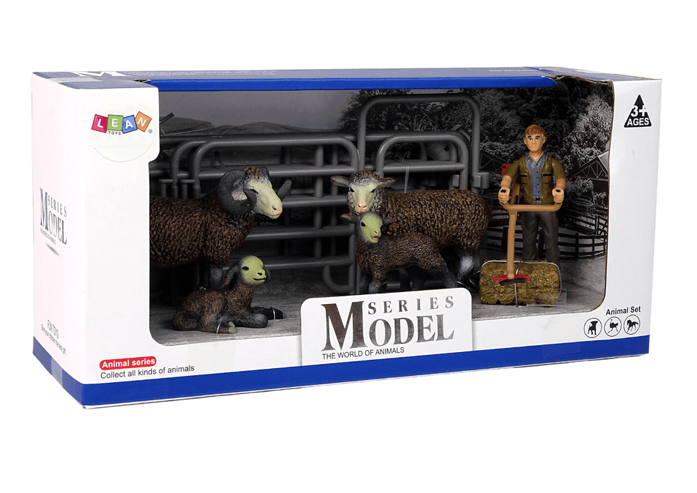 Set uključuje Okućnicu s vratima koja se otvaraju, farmera, obitelj ovaca uključujući odraslu ovcu, ovna i dvije mlade ovce te balu slame.
