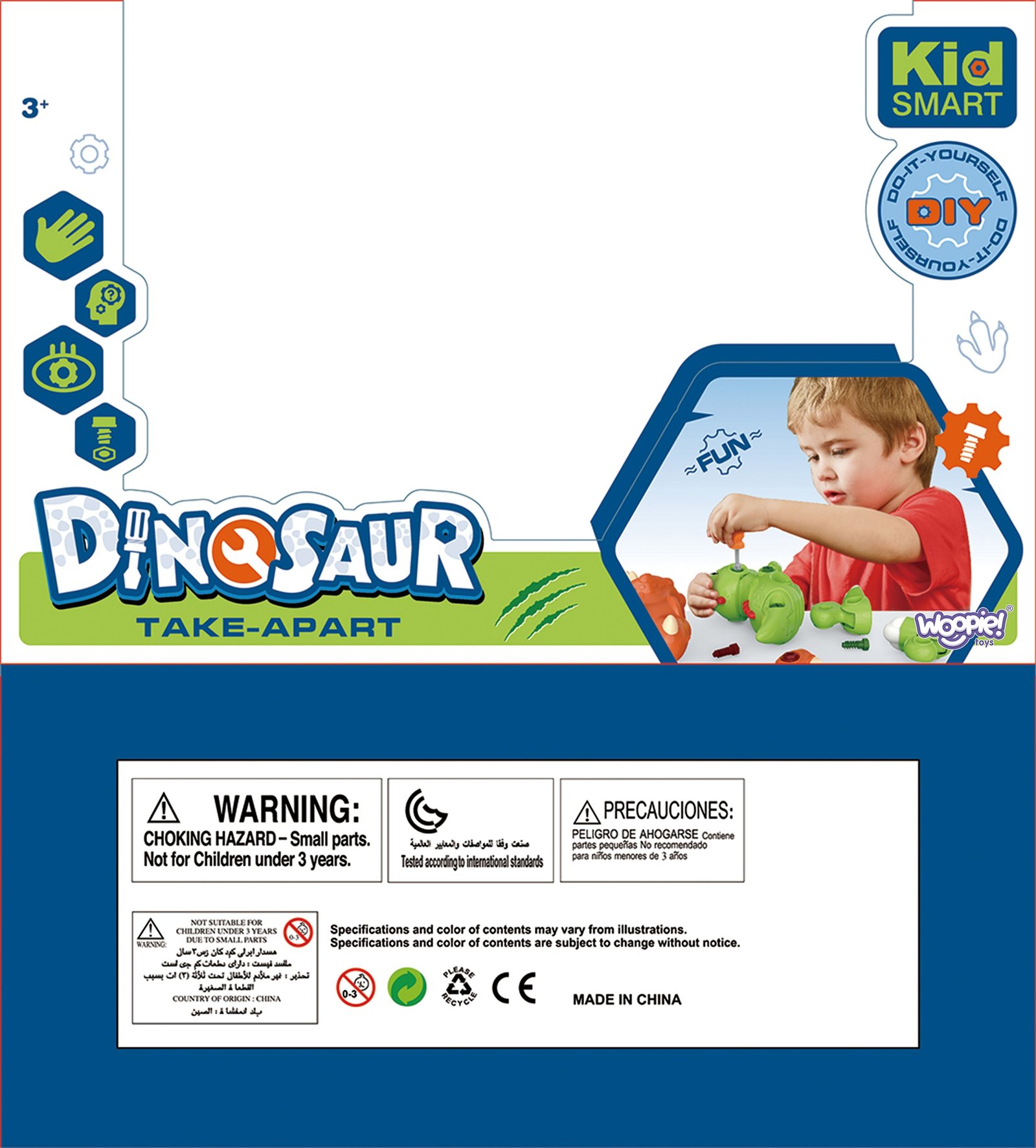 Set sadrži mnoge elemente od kojih dijete može sastaviti dinosaura pomoću funkcionalnog odvijača. Odvijač omogućuje zatezanje i otpuštanje vijaka. Nakon sastavljanja, Dino ima pokretne dijelove: glavu, rep i udove, što dodatno povećava mogućnosti igre. Igračka razvija motoričke sposobnosti, poznate kao “fina motorika” – pokrete ručica. Dinosauri su bezvremenska tema koju obožavaju sva djeca. Igra s prapovijesnim bićem proširit će djetetovu maštu i kreativnost.