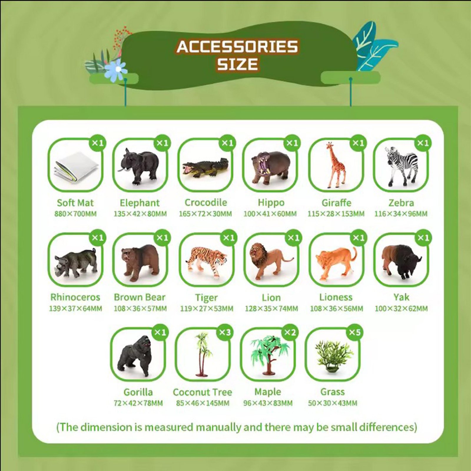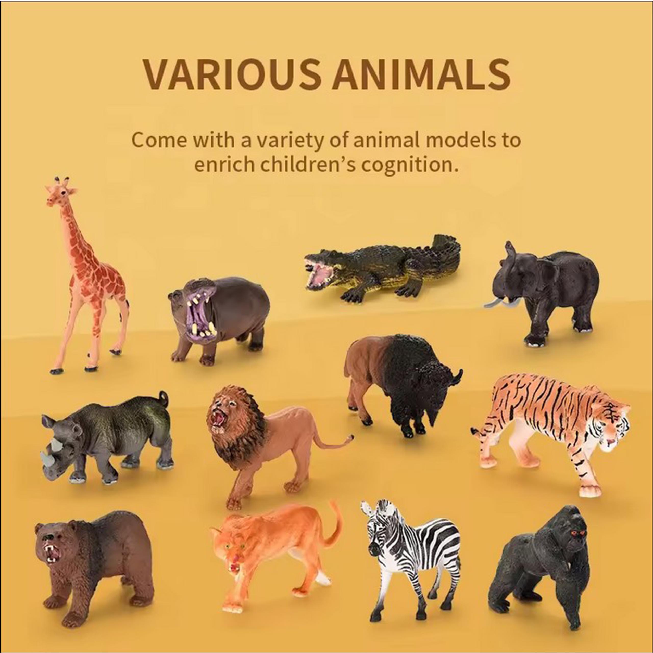Set figurica ” Divlje životinje ” brenda WOOPIE odlična je ideja za poklon za male ljubitelje životinjskog svijeta. Set uključuje 12 različitih realistički reproduciranih figura životinja i veliku, mekanu podlogu za igru. Set je savršen za učenje kroz igru. Djeca će moći naučiti prepoznavati životinjske vrste i imenovati ih. Set je opremljen praktičnom torbicom s udobnom ručkom koja ne samo da omogućuje brzo čišćenje, već vam omogućuje da ga ponesete na putovanje u kompaktnoj kutiji. Prostirka koja se nalazi u setu potaknut će maštu vašeg djeteta – motiv parka i žive, upečatljive boje stvorit će mnogo različitih scenarija za igru .