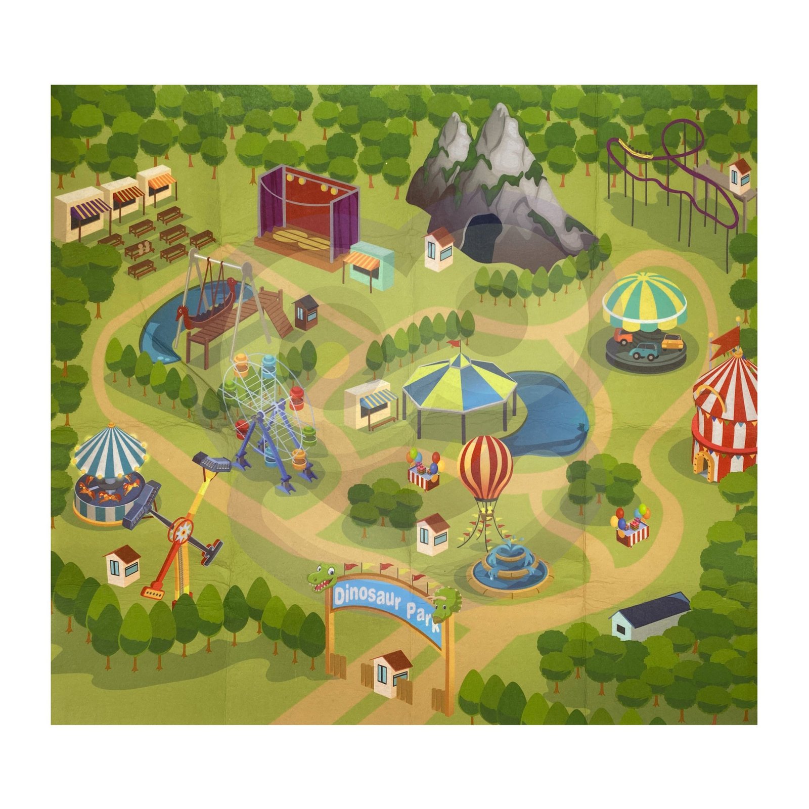 • – Set sadrži 13 figura dinosaura, 2 stabla i prostirku.