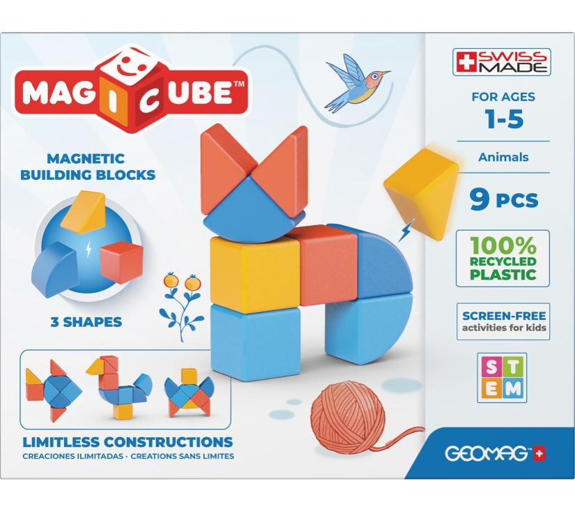 MAGICUBE je revolucionarna platforma Geomagworld proizvoda u kategoriji Junior Construction. Ovaj inovativni sustav gradnje sastoji se od magnetskih kocki koje se spajaju jedna na drugu sa svih šest strana. Iskorištavanjem nevidljivih i magičnih svojstava magnetizma, djeca mogu dati na volju svojoj mašti dok izrađuju šarene 3D modele. Samo igrajući se s nekoliko kockica, čak i najmlađa djeca počinju razvijati motoriku. Reciklirana linija Magicube proizvedena je od 100% reciklirane plastike s visokim standardima kvalitete.
