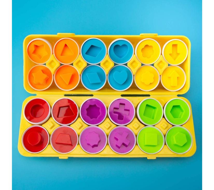 Montessori jaja brenda WOOPIE edukativna su igračka koja razvija djetetovu motoriku i koordinaciju oko-ruka. Set sadrži 12 bijelih jaja u kartonskoj kutiji koja će svojom šarenom unutrašnjosti u različitim oblicima potaknuti igru.  Igra uključuje spajanje dviju polovica jaja u cjelinu. Jaja trebaju biti usklađena i bojom i oblikom .