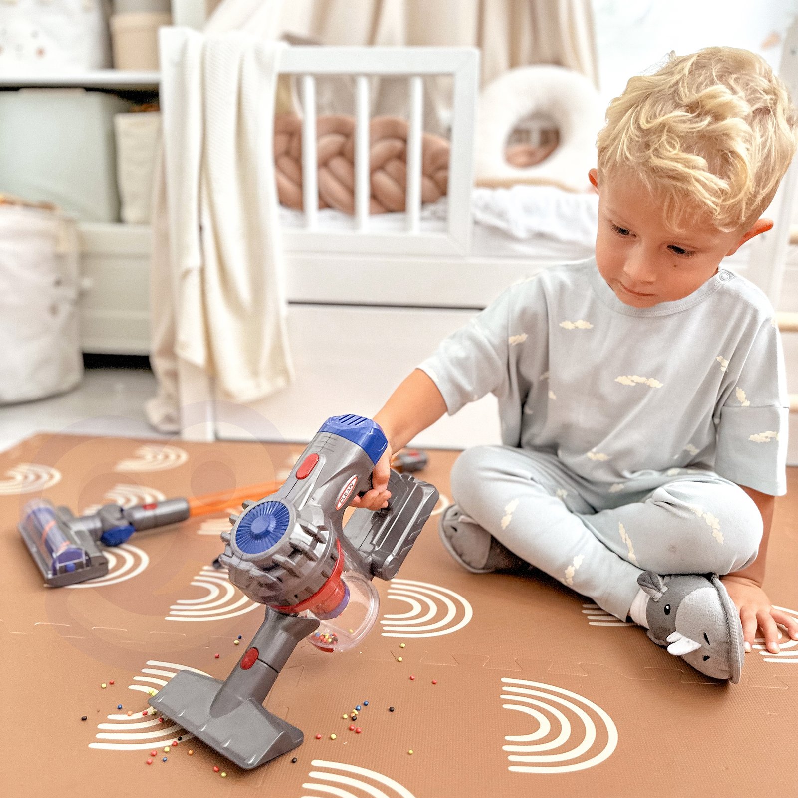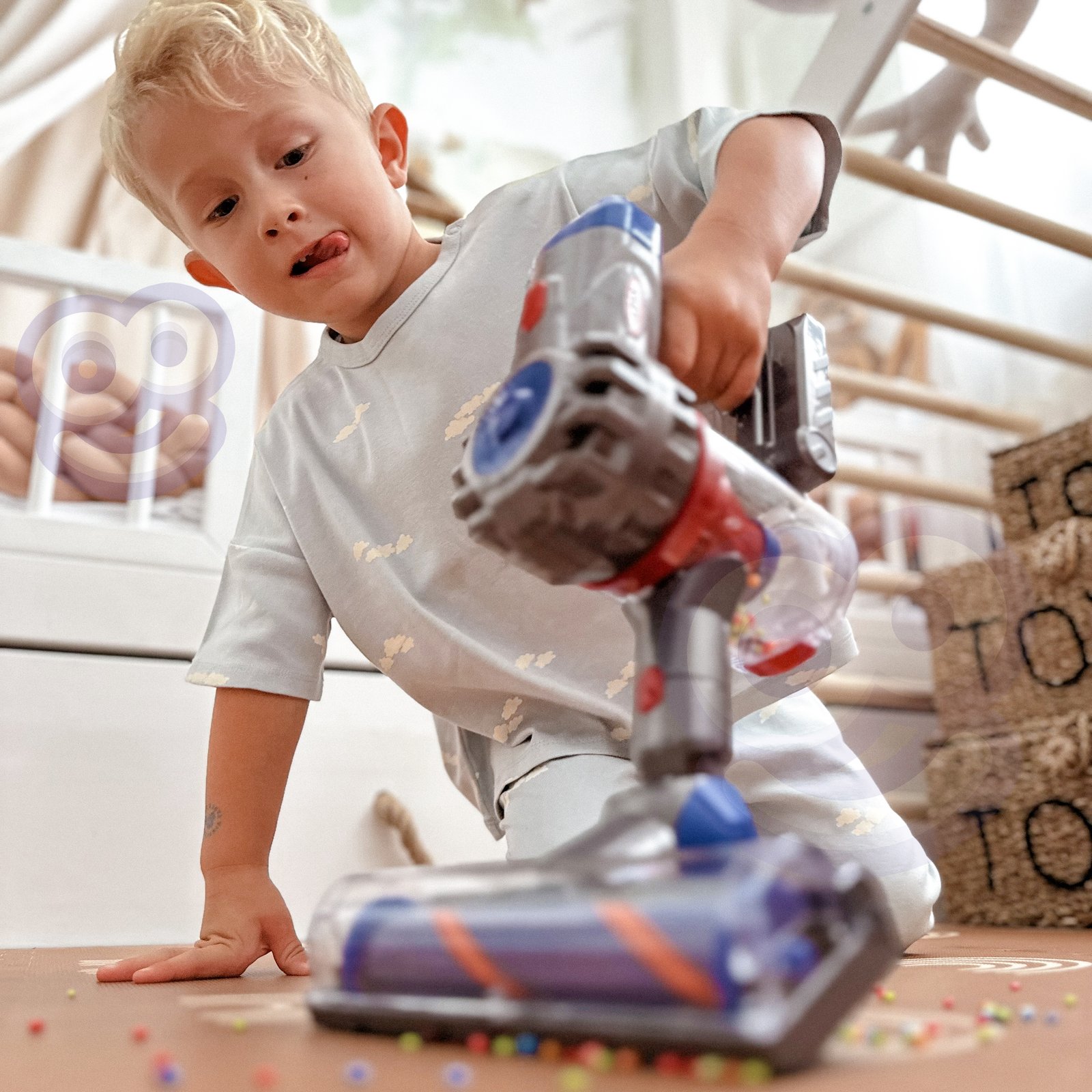 Uspravni usisavač 3 u 1 marke Woopie idealan je prijedlog za male kućne pomoćnike. Funkcija usisavanja i zvuk učinit će zabavu čišćenja još realističnijom i privlačnijom. Odvojivi spremnik za umjetni otpad lako se prazni. Igračka je izrađena od visokokvalitetnih materijala koji su sigurni za djecu . Usisavač ima udobnu ručku , zahvaljujući kojoj dijete može nositi usisavač s mjesta na mjesto. Savršeno je kao dar za pomoć djetetu da oponaša svog roditelja , jer koje dijete ne bi željelo biti odraslo?