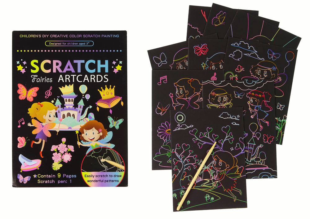 Dimenzije svake slike su 13,5 cm x 18,5 cm, što ih čini savršenim za male ruke. Osim toga, drveni štap za grebanje dugačak je 14 cm, što olakšava rukovanje njime tijekom igranja.