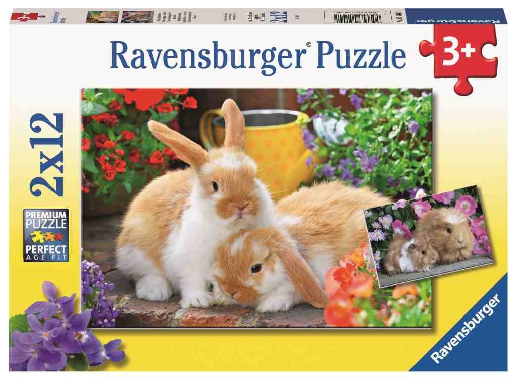 Lijepe male životinje, zeko i zamorci, 2×12 komada puzzle, veličina slike 26x18cm. Pogodno za dob 3+