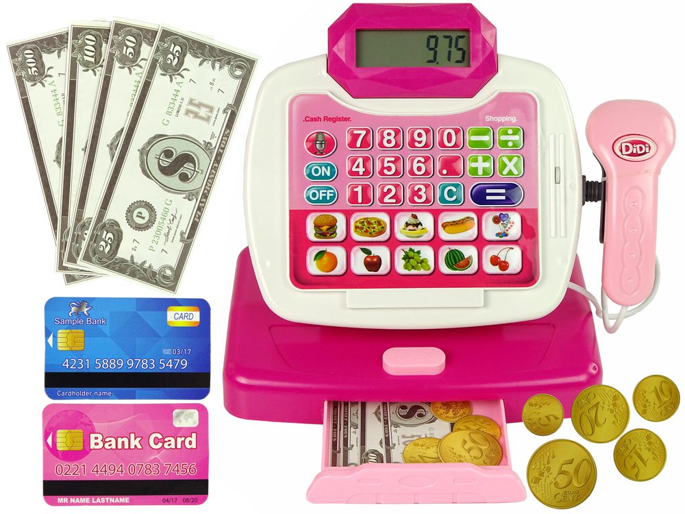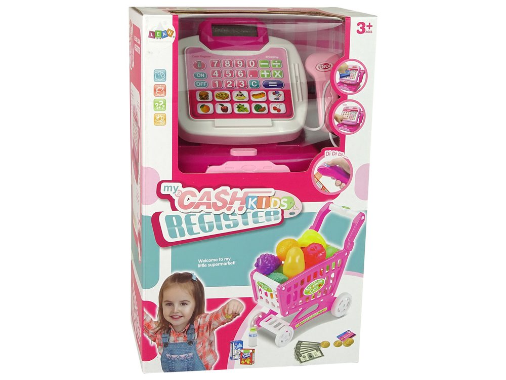 Priložena kolica imaju udobnu ručku. Na dnu panela blagajne nalazi se 10 različitih slika, različitih proizvoda kao što su pizza, grožđe, trešnja ili lubenica. Svaki put kada se proizvod skenira skenerom, čut ćete zvučni signal i količina se pojavljuje na zaslonu. Nakon što se kupnje zbroje, sve što trebate učiniti je platiti gotovinom ili karticom. U set je uključen fiktivni novac.