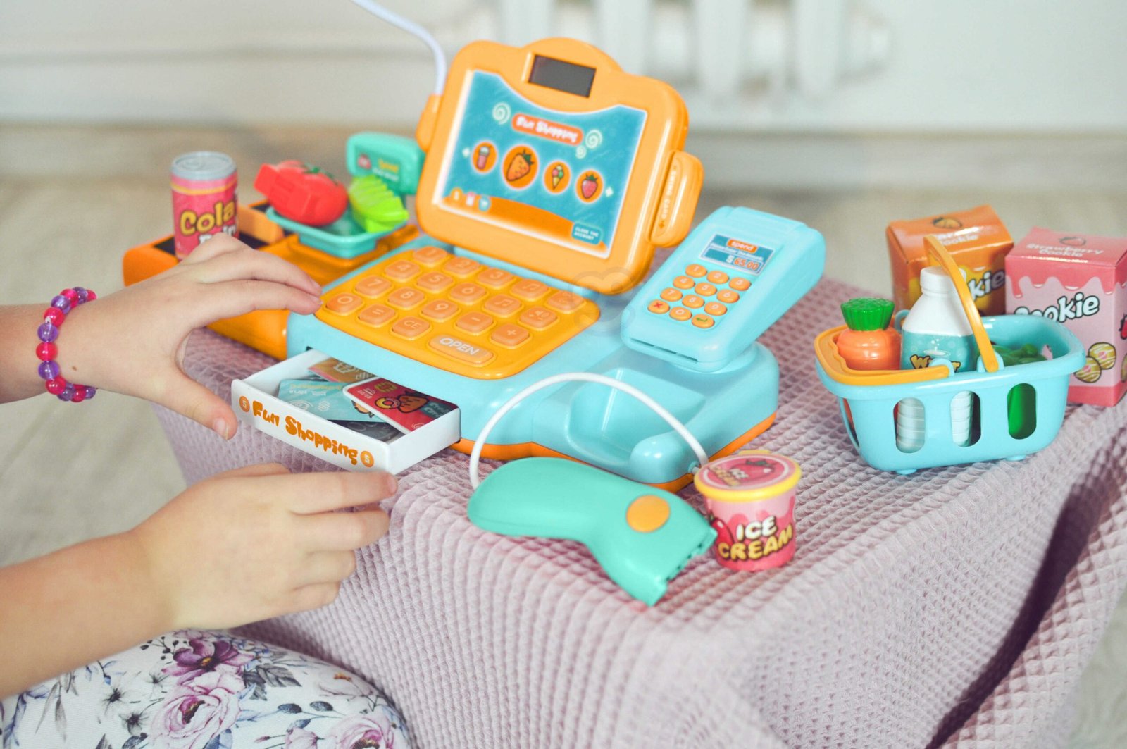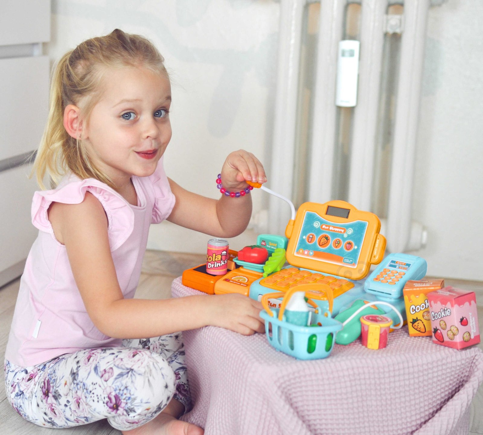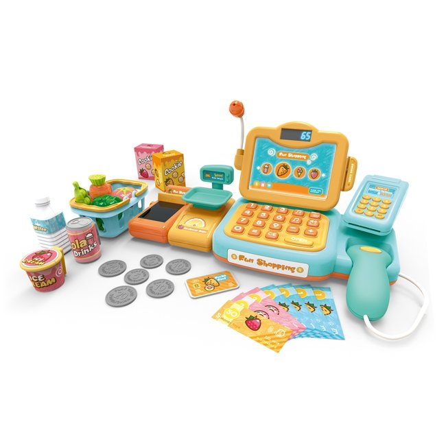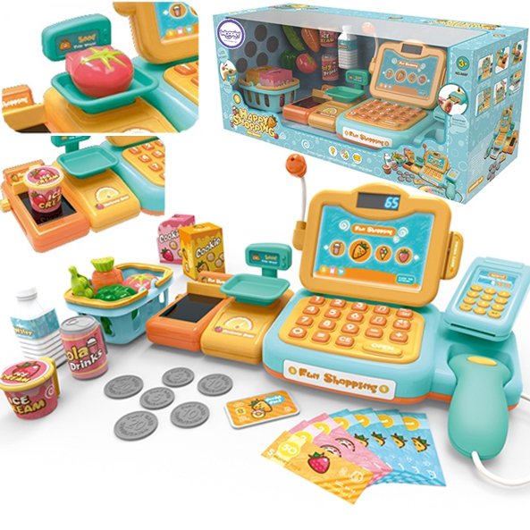Woopie blagajna s brojnim dodacima savršena je ideja za djecu stariju od 3 godine . Igračka razvija dječju maštu i potiče ih na kreativno razmišljanje . Djeca mogu vagati voće i povrće i zatim ih puniti u kasu pomoću tipkovnice. Čitačem će skenirati paket keksa ili bocu vode. Tada će moći plaćati na dva načina: tradicionalno novcem ili platnom karticom . Sve je to uključeno u set i pružit će vašem djetetu sate zabave.