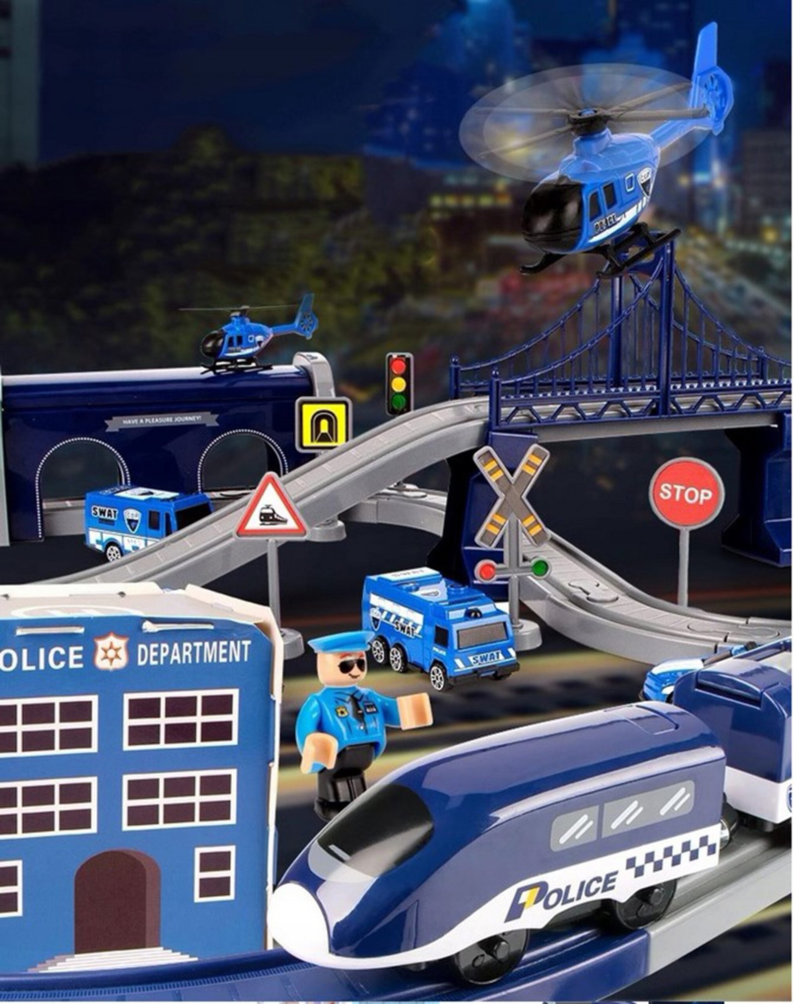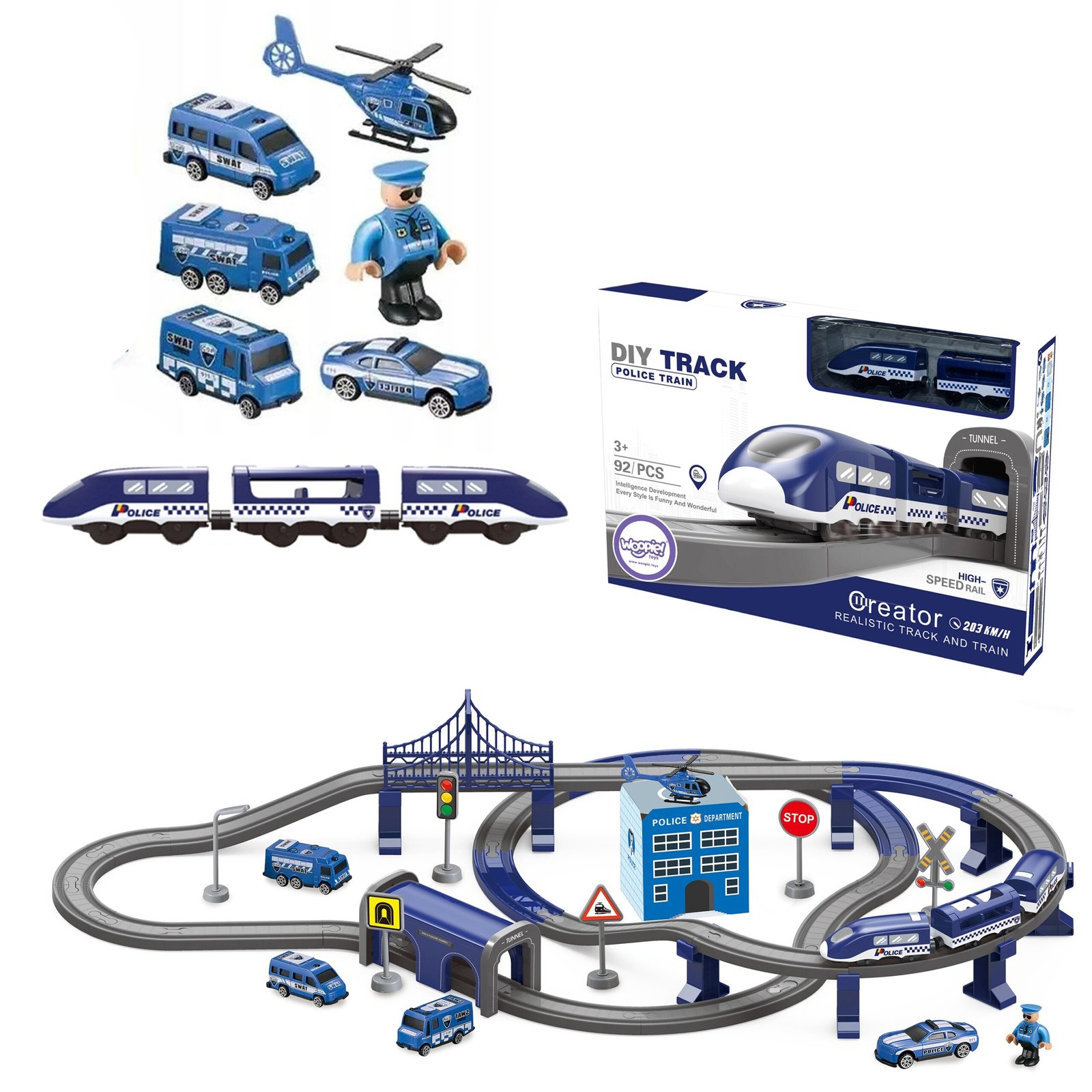 Woopie el. vlak: Set s policijskom stanicom, helikopterom i automobilima, 92 dijela