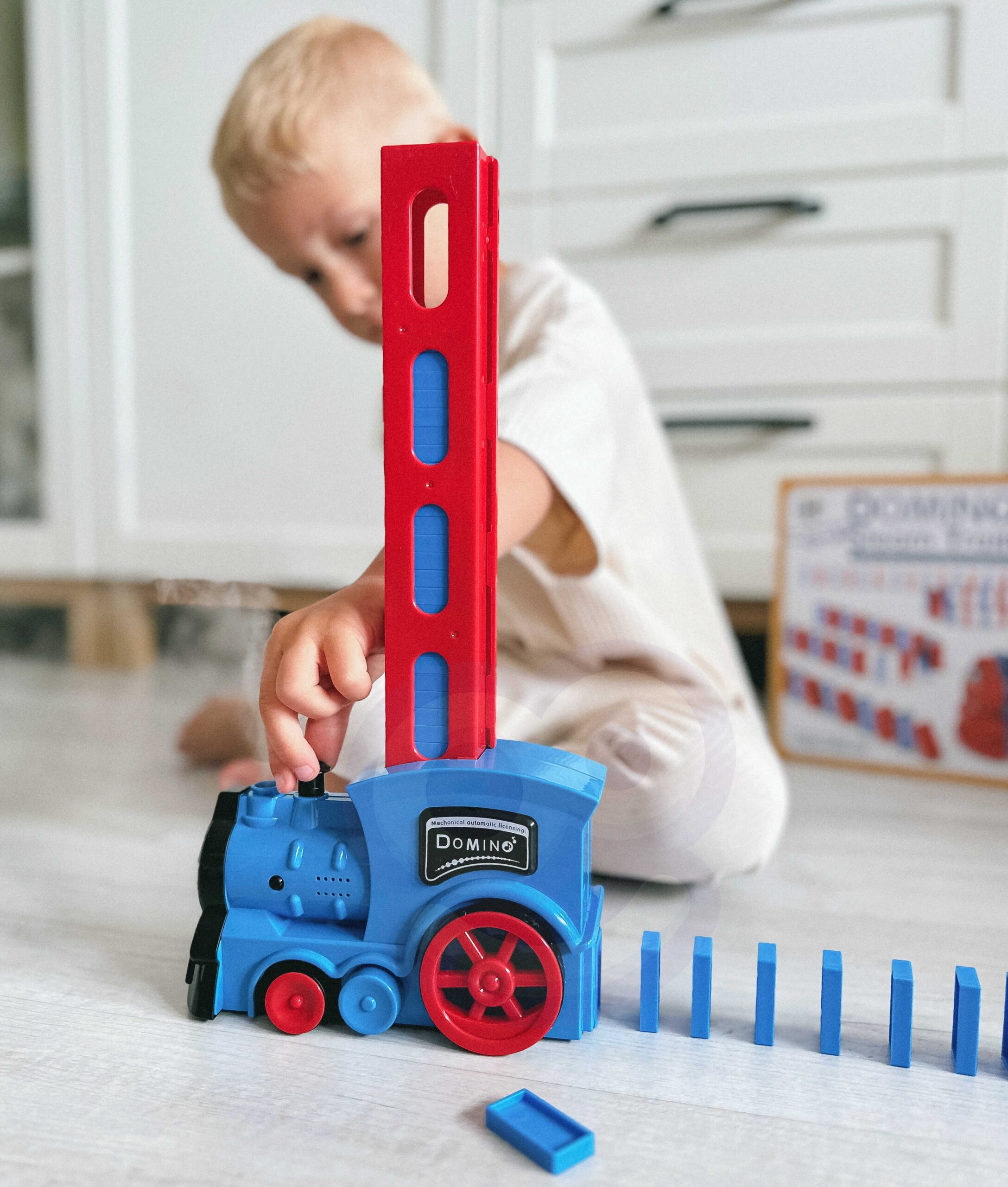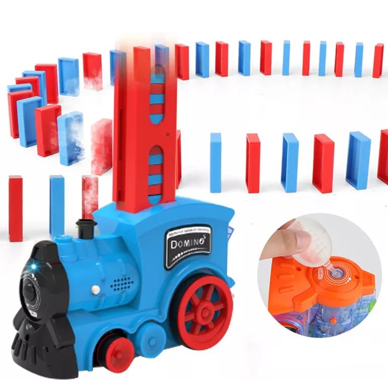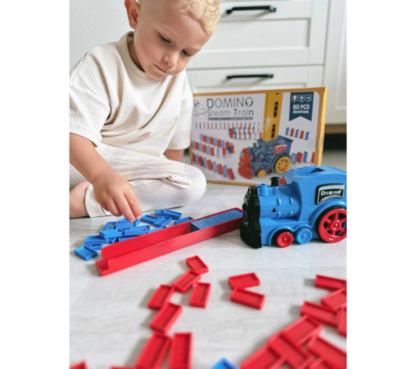 Električna lokomotiva za Domino blokove s parom marke WOOPIE oduševit će svako dijete. Vlak ima mnogo fantastičnih značajki . Samo napunite spremnik blokovima, stavite ih u vlak, pritisnite gumb i vlak se pomiče, proizvodeći zvuk i svijetleći , i automatski ostavljajući blokove iza sebe u domino uzorku . Pomoću gumba možete uključiti i isključiti choo-choo, a pomoću dimnjaka možete ga uključiti odozgo . Samo stavite vodu na posebno mjesto i lokomotiva će također ispuštati dim kao iz prave lokomotive. Mlađa djeca vole odmah prevrtati kocke, dok će starija djeca biti zainteresirana za prevrtanje kocki u domino efektu . Set sadrži čak 80 elemenata . Igračka ne samo da će pružiti izvrsnu zabavu, već će i poučiti . Razvija djetetov uzročno-posljedični odnos , motoričke vještine i podržava koncentraciju , maštu i kreativnost .