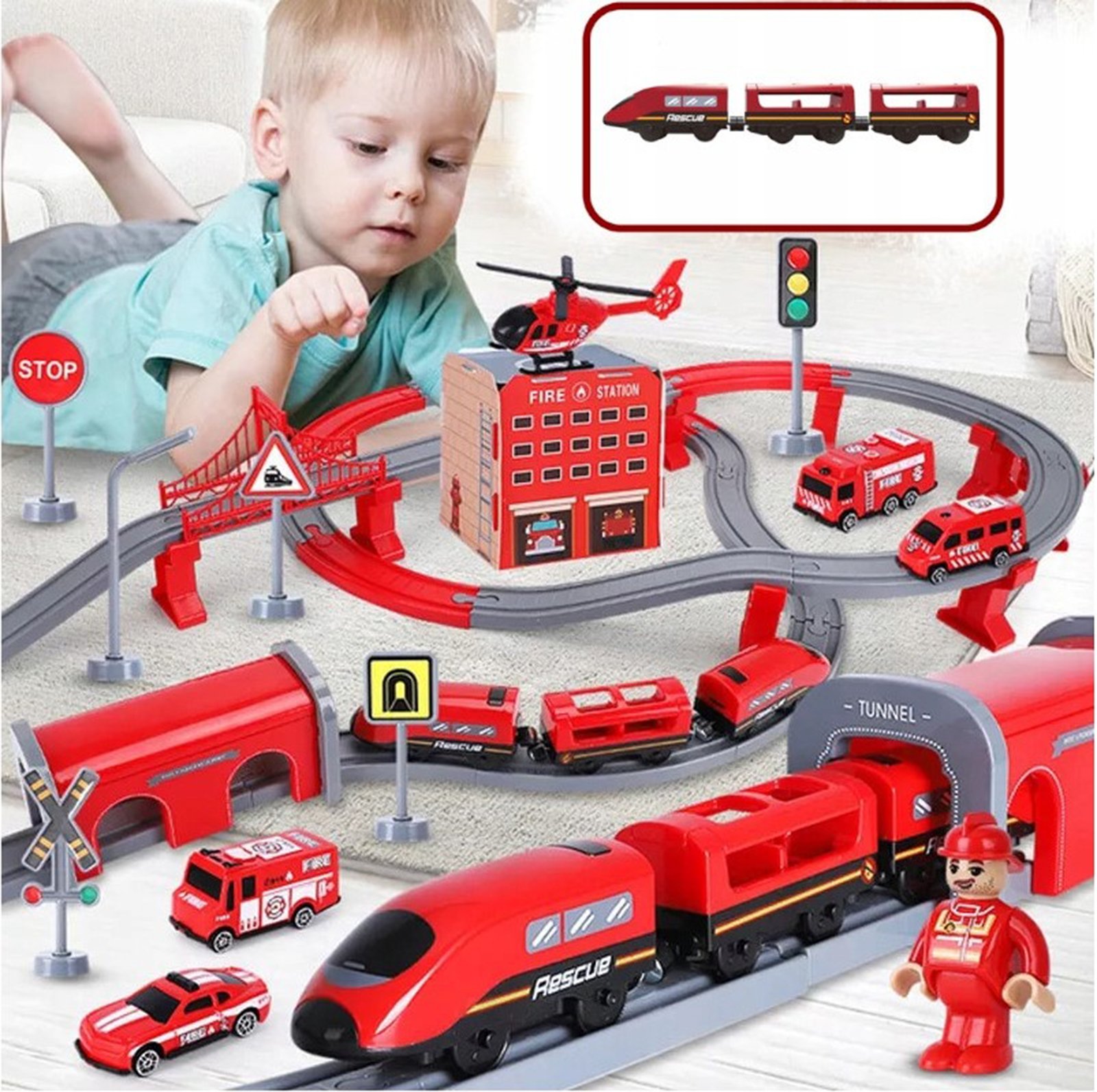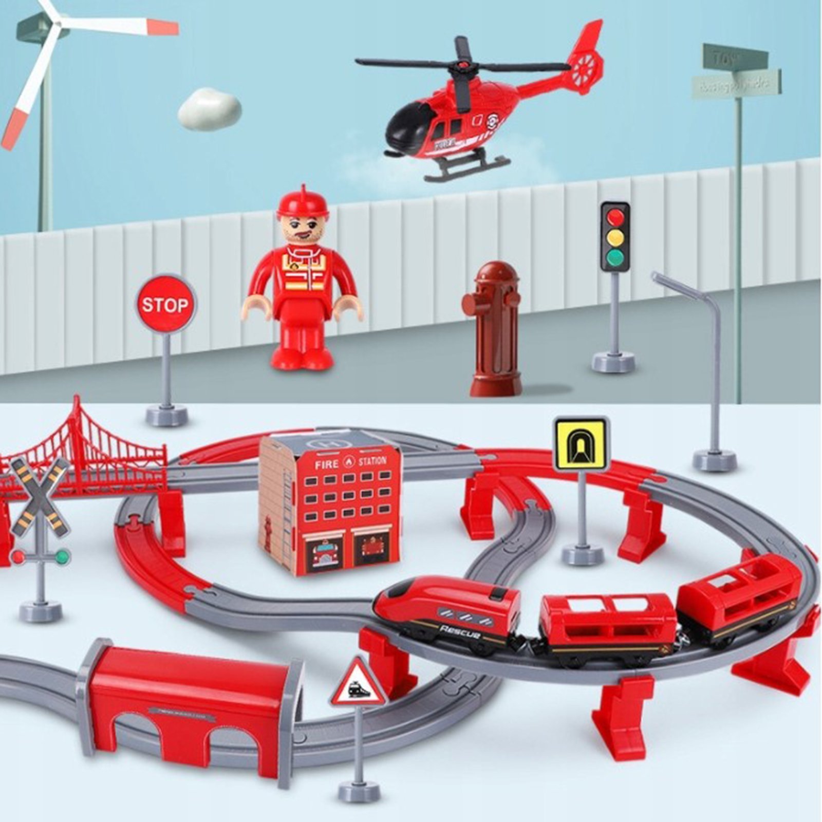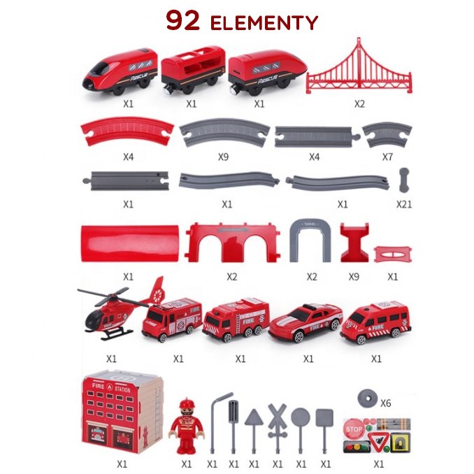 Vlakić renomiranog brenda Woopie savršen je prijedlog za vaše male ljubitelje motorizacije i željeznice. Šareni vlak oduševljava djecu svih uzrasta, pruža brojne atrakcije i beskrajne emocije. Set sadrži 92 elementa , uključujući: moderna lokomotiva na baterijski pogon, elementi gusjenice, vatrogasna vozila i helikopter. Ova igračka nije samo zabavna, već i velike razvojne mogućnosti za dijete. Osobito je razvijena prostorna orijentacija, tehnički osjećaj i, naravno, mašta. Vlak je upakiran u originalnu kutiju, savršenu za poklon.