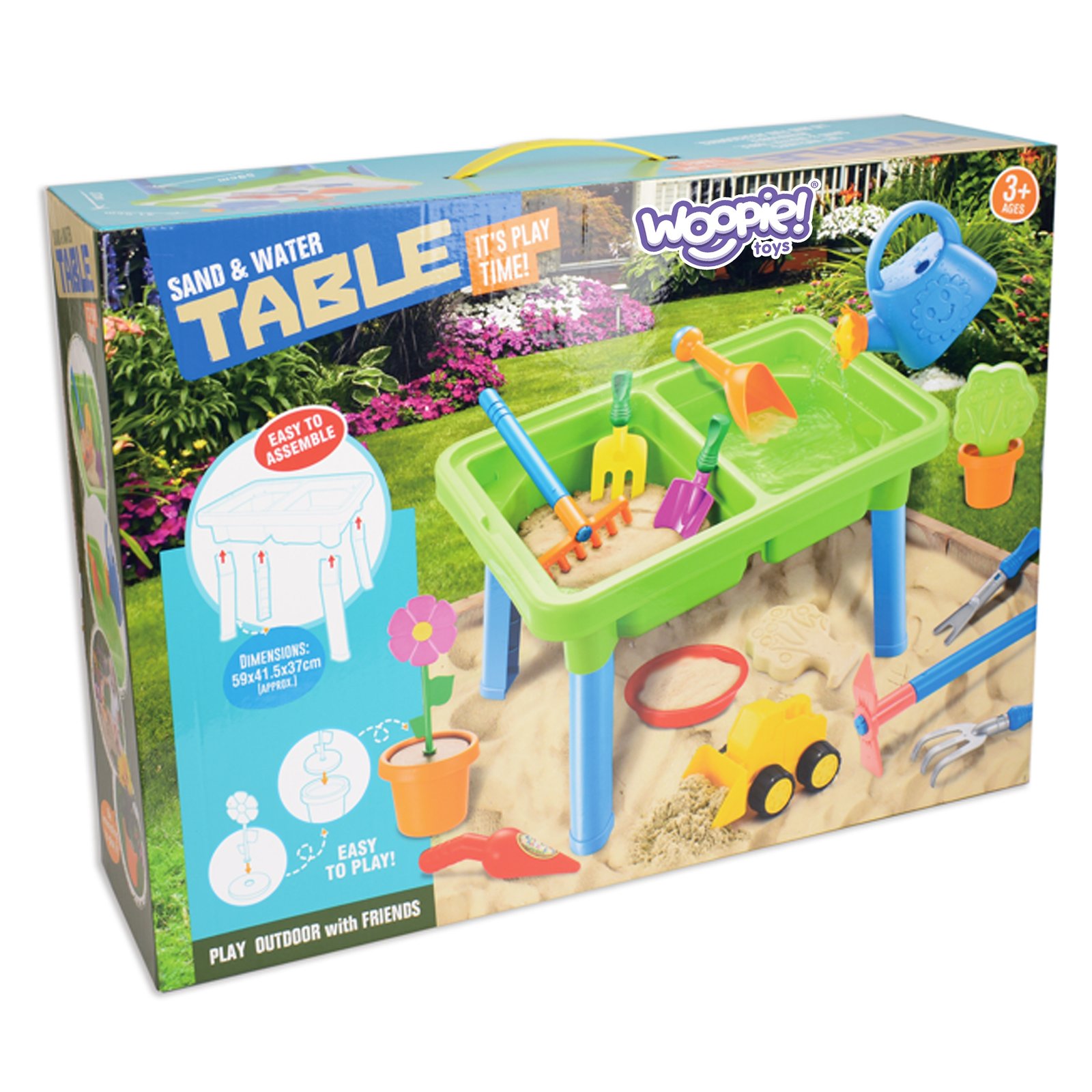 Stol marke WOOPIE savršena je igračka koja će djeci pružiti nebrojene sate zabave s vodom i pijeskom. U setu se nalazi čak 13 raznih dodataka kao što su: kalup, kanta za zalijevanje, bager i dvije lopate. Stol ima dva udubljenja – jedno se može napuniti vodom, a drugo pijeskom , što omogućuje kreativnu igru bilo gdje. Set je savršen kako kod kuće tako i na plaži ili u pješčaniku. Ovaj svestrani set omogućuje djeci stvaranje neograničenih scenarija za igru, potičući njihovu maštu i razvijajući motoričke vještine . Savršeno za kreativnu igru u zatvorenom i na otvorenom!