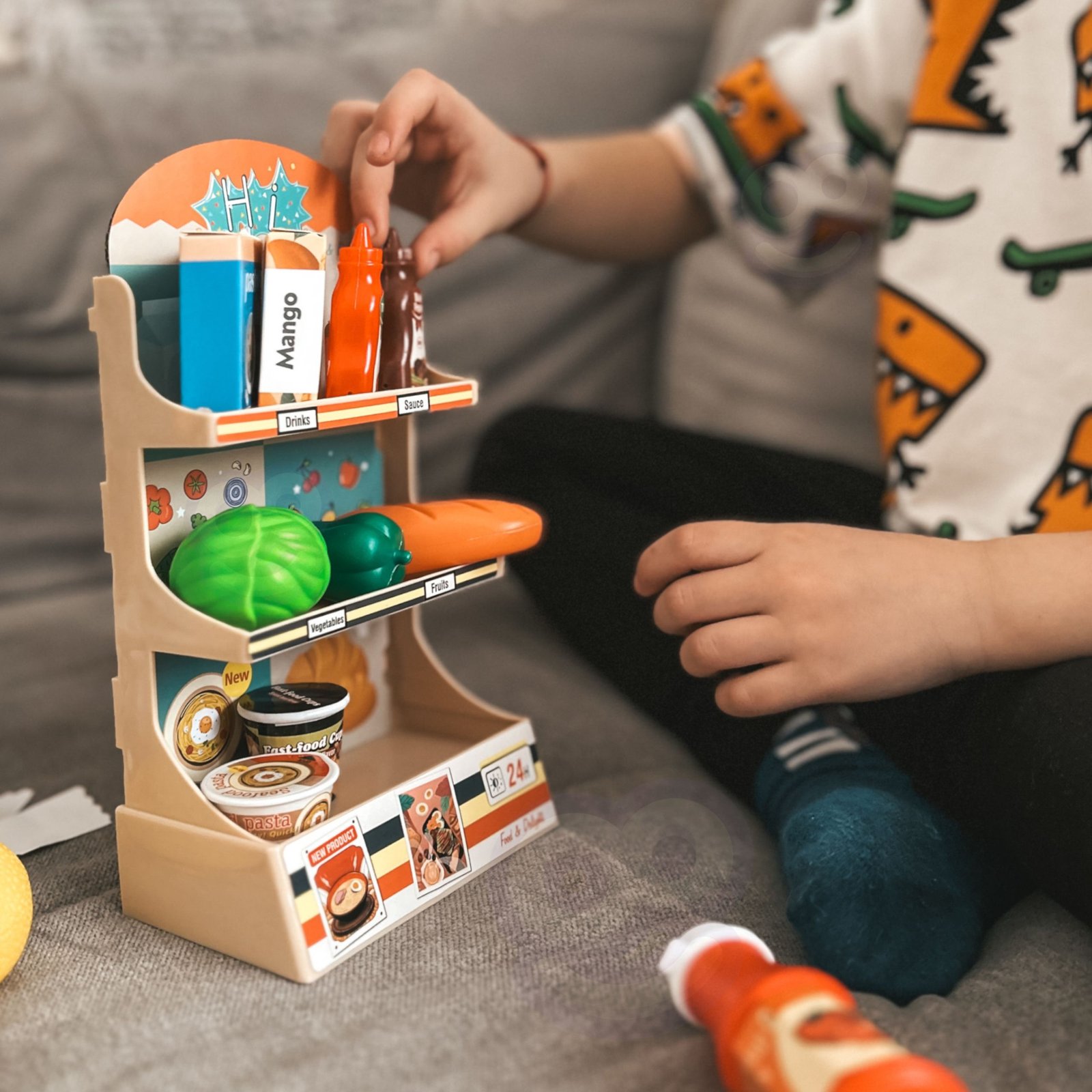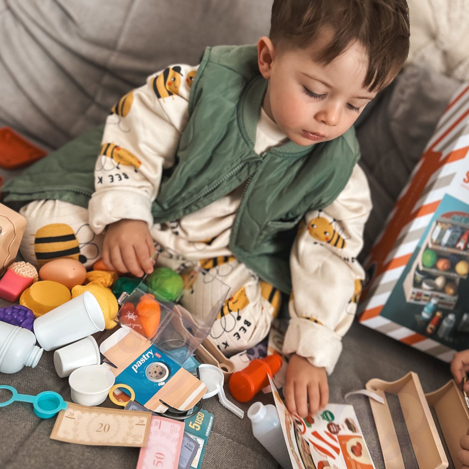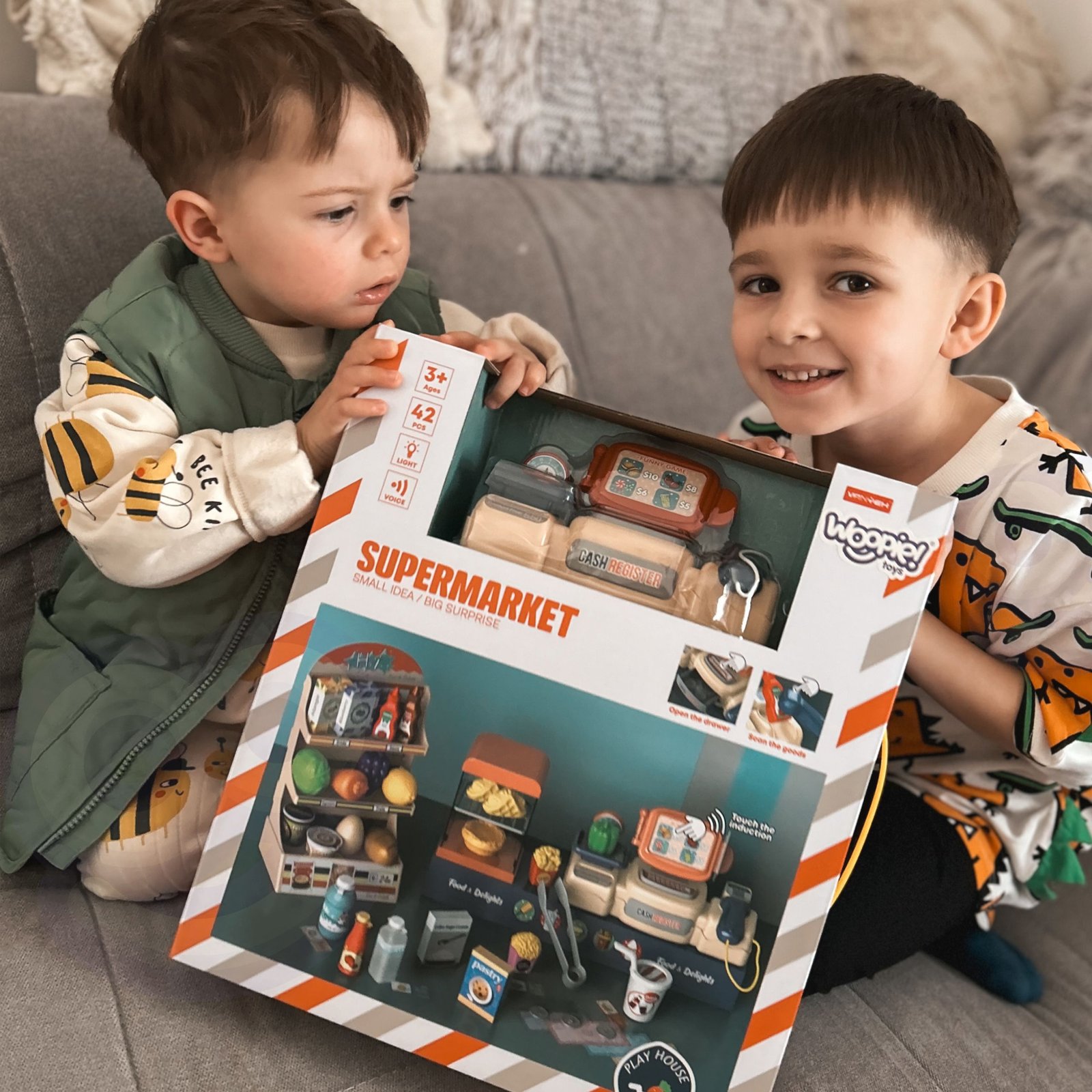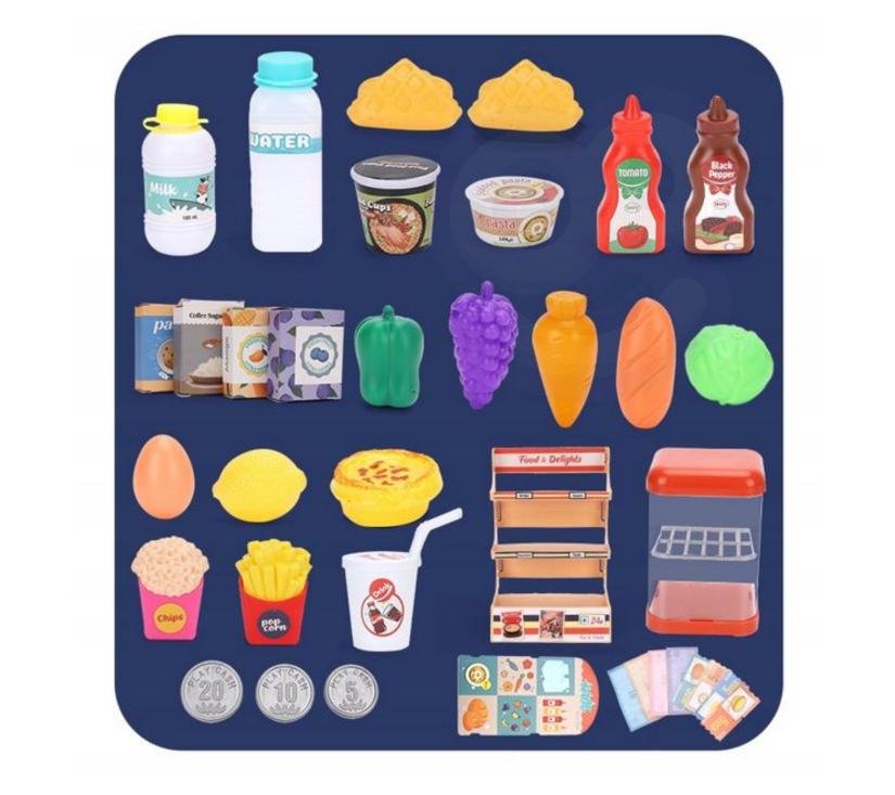 Trgovina Supermarket 42 Elementy brenda WOOPIE nudi nam brojne mogućnosti i ideje za zabavu. Možemo poslužiti kupce, vagati proizvode i koristiti čitač! Set razvija motoričke vještine, maštu, kreativnost i samostalno razmišljanje.