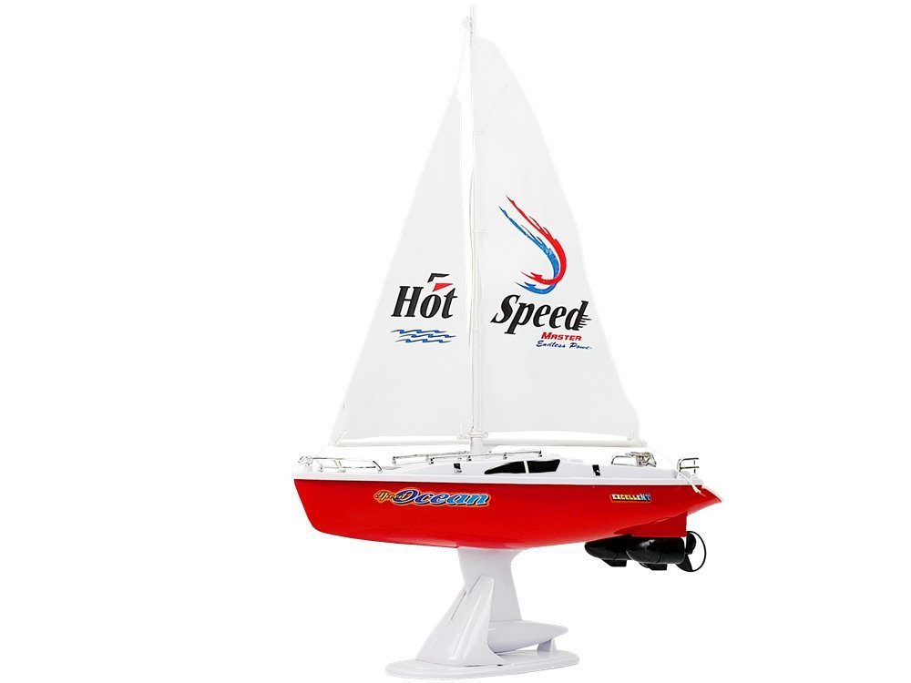 Jedrilica na daljinsko upravljanje izrađena je od jednog komada plastike, zahvaljujući čemu u njenoj konstrukciji nema rupa. Svaki detalj, čak i jedro, savršeno je reproduciran. Kretanje po vodi omogućuju 2 motora na stražnjoj strani igračke. Čamac se pokreće tipkom koja se nalazi u njegovom stražnjem dijelu, zahvaljujući čemu nije upadljiv. Pilot ima oblik kormila, dijete može postati kapetan vlastitog broda. Ima antenu, zahvaljujući kojoj povećava domet upravljanja. Možete ga usmjeriti prema naprijed, okrenuti se i ploviti bočno. Nakon igranja može biti savršen ukras u sobi zahvaljujući stalku koji je uključen u set.