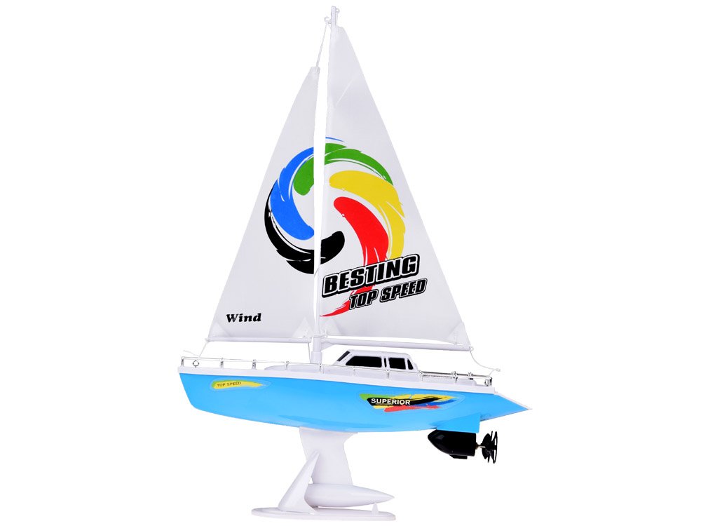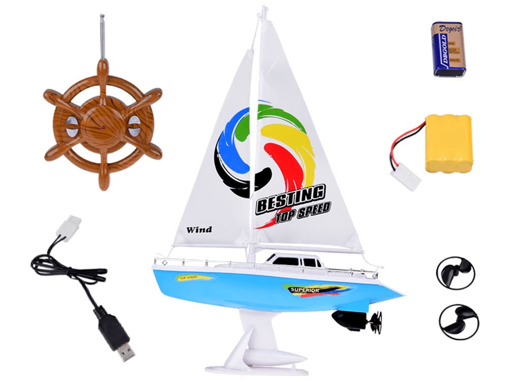 Jedrilica na daljinsko upravljanje Jedrilica na daljinsko upravljanje opcija je za svakog malog jedriličara. Prekrasna plava jahta s bijelim jedrima, kojom se upravlja daljinskim upravljačem u obliku volana s frekvencijom od 27MHz.