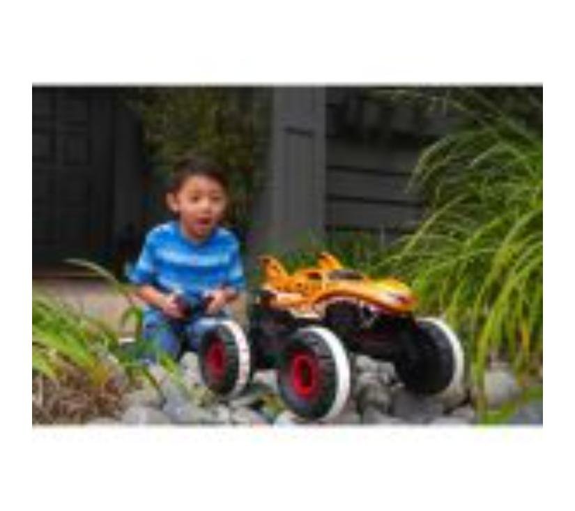 Hot Wheels Monster Trucks HW Unstoppable Tiger Shark R/C napada terene poput opakog predatora zahvaljujući tehnologiji HW Terrain Stomp koja osvaja podove, kamenje, travu i više!