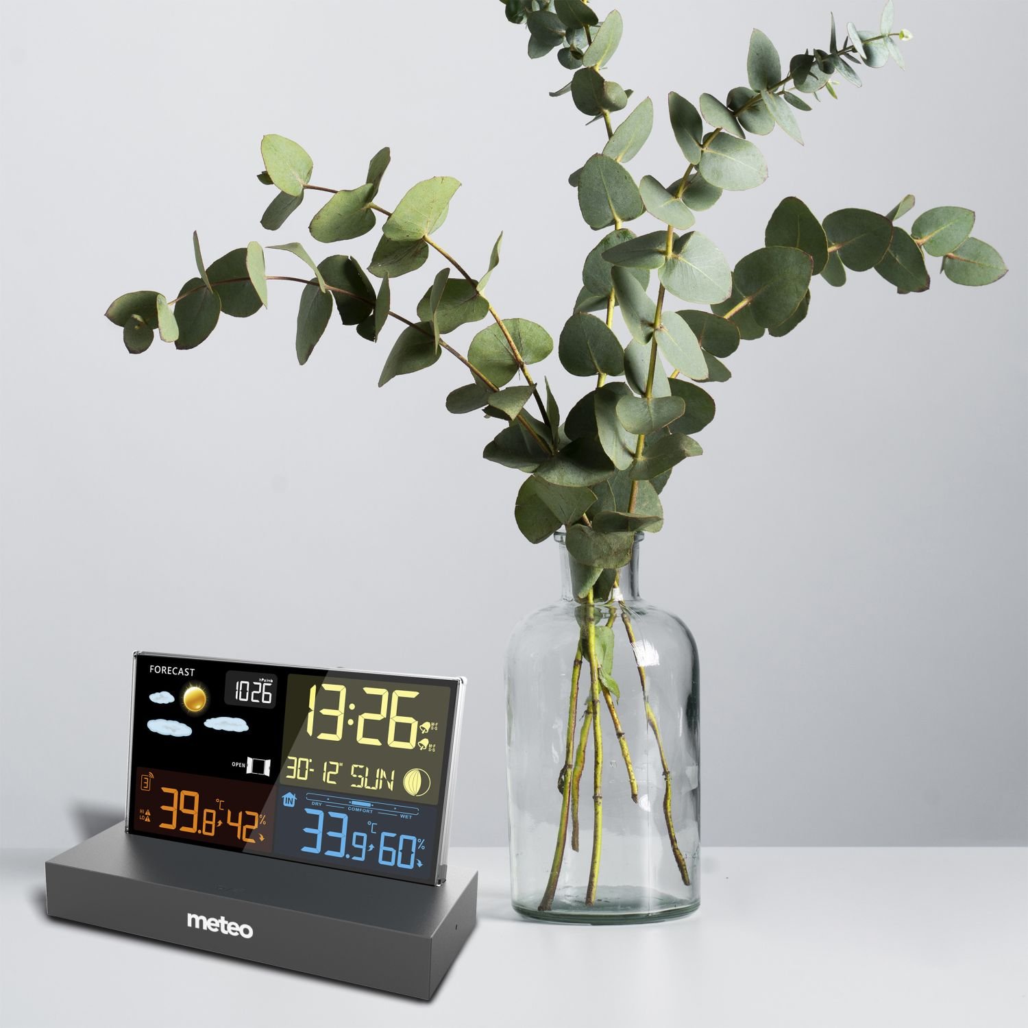 Prateći parametre kao što su fluktuacije temperature, tlaka i vlažnosti, postaja predviđa vremenske trendove u sljedećih 12-24 sata. Piktogramima nas obavještava o predviđenom vremenu.
