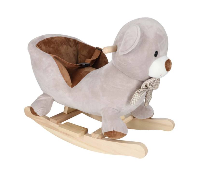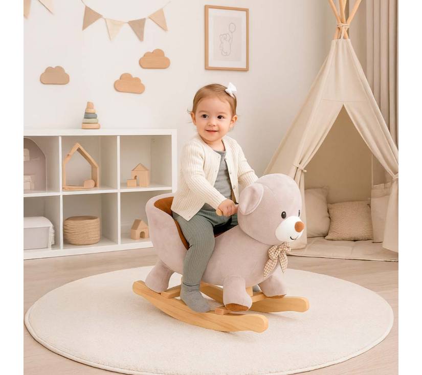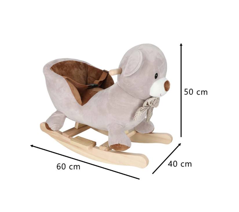 Ovaj preslatki, mekani medvjedić za ljuljanje stvoren je imajući na umu sigurnost i uživanje djece od 12 mjeseci. Udobno, plišano sjedalo s naslonom i podesivim sigurnosnim pojasom osigurava stabilnost i udobnost tijekom igre. Drvene staze sa stepenicama olakšavaju penjanje i silaženje, a čvrsta konstrukcija jamči dugogodišnju izdržljivost.