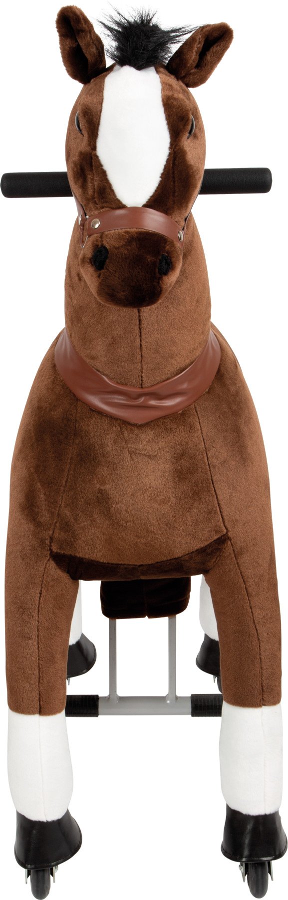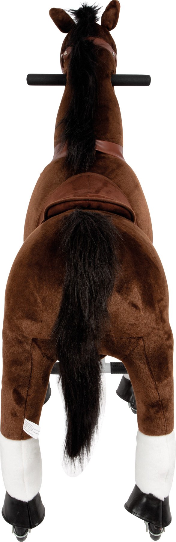 Vrijeme je da se malo pomaknete u igru ​​”konja”! Ovaj igrački konj spreman za jahanje s funkcijom upravljanja idealan je suputnik za brze izlete. Smeđeg plišanog konja za jahanje mladi ljubitelji konja mogu pokrenuti nožnom papučicom, a zatim ga bočnim hvataljkama usmjeravati u željenom smjeru. Uklonjivo sedlo i uzde zajedno s elegantnom plišanom grivom i repom pružaju realistične scenarije za igranje uloga. Vanjski dio od plišanog krzna može se skinuti pomoću patentnog zatvarača i oprati. Tko želi ići na vožnju? Ovaj konj za igru ​​prikladan je i za zatvorene i za vanjske prostore. Visina sjedala od cca. 67 cm pruža iznimno veliku zabavu u vožnji! Djeca će vježbati ravnotežu, koordinaciju i spretnost pri kretnjama naprijed i nazad na konju. To je konj za jahanje koji djecu priprema za jahanje pravog konja i na zabavan način jača njihovu svijest o tijelu.
