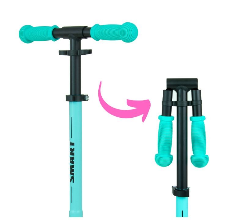 Romobil ima profiliranu i široku platformu s protukliznim slojem ojačanim metalnim okvirom. Zbog inovativnog sustav brzog sklapanja odlično funkcionira i kod kuće i na putovanjima – zauzima malo prostora. Lagana i čvrsta konstrukcija jamči sigurnost i praktičnost korištenja.
