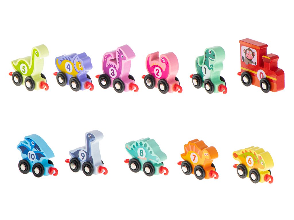 Drveni vlakić montessori dinosauri 11 elemenata