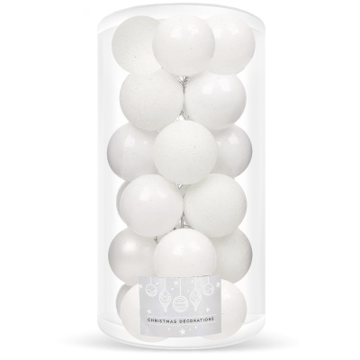 Božićne kuglice 4 cm – set od 20 komada bijele