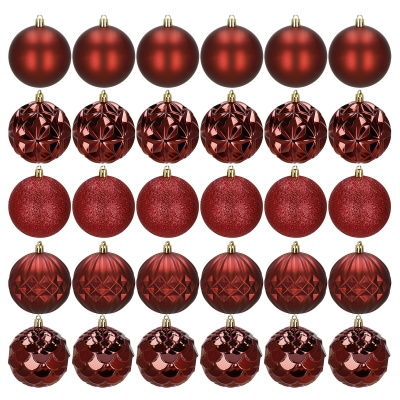 Božićne kuglice 8 cm – set 30 komada nijanse crvene