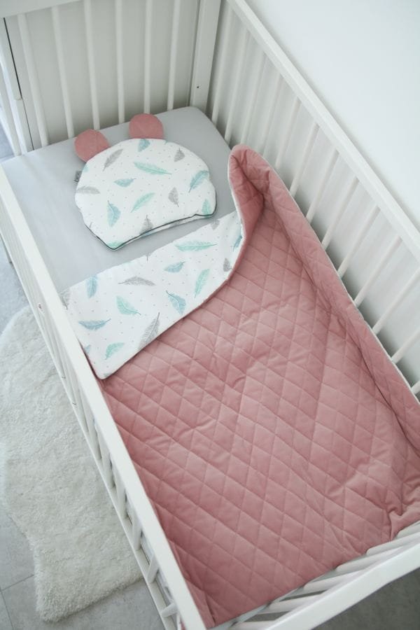 Dvostrana i slatka deka za bebe. Napravljeno od elegantne tkanine s uzorkom vafla (100% pamuk) i izuzetno mekanog pamuka s originalnim uzorkom. Deka s hipoalergenim punjenjem iznutra. Može se koristiti i kao prva posteljina za bebe.