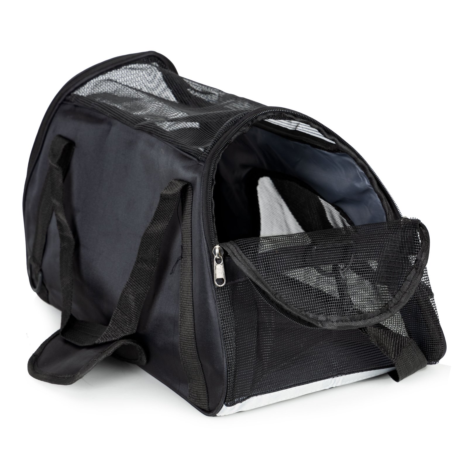 Obje strane nosiljke opremljene su čvrstim bravama koje jamče sigurnost i osiguravaju da ljubimac ostane sigurno zaključan unutra. Možete otvoriti jednu ili obje strane ovisno o vašim željama i potrebama. Otvor s dvije strane također olakšava higijenu , omogućavajući jednostavno čišćenje i pristup životinji.