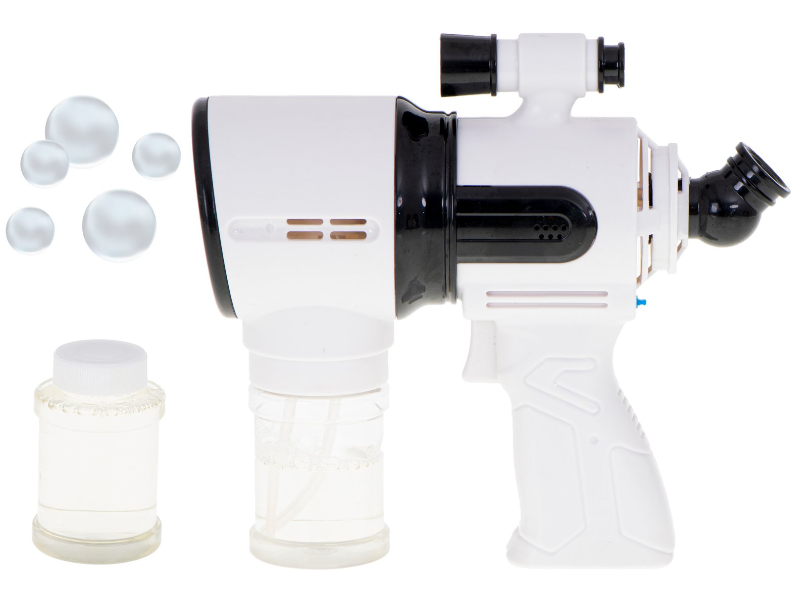 Igračka je opremljena s 5 prstenova koji se uranjaju u tekućinu kada se pritisne okidač, a mala lepeza koja izaziva blagi udar izbacuje stotine šarenih mjehurića od sapunice.