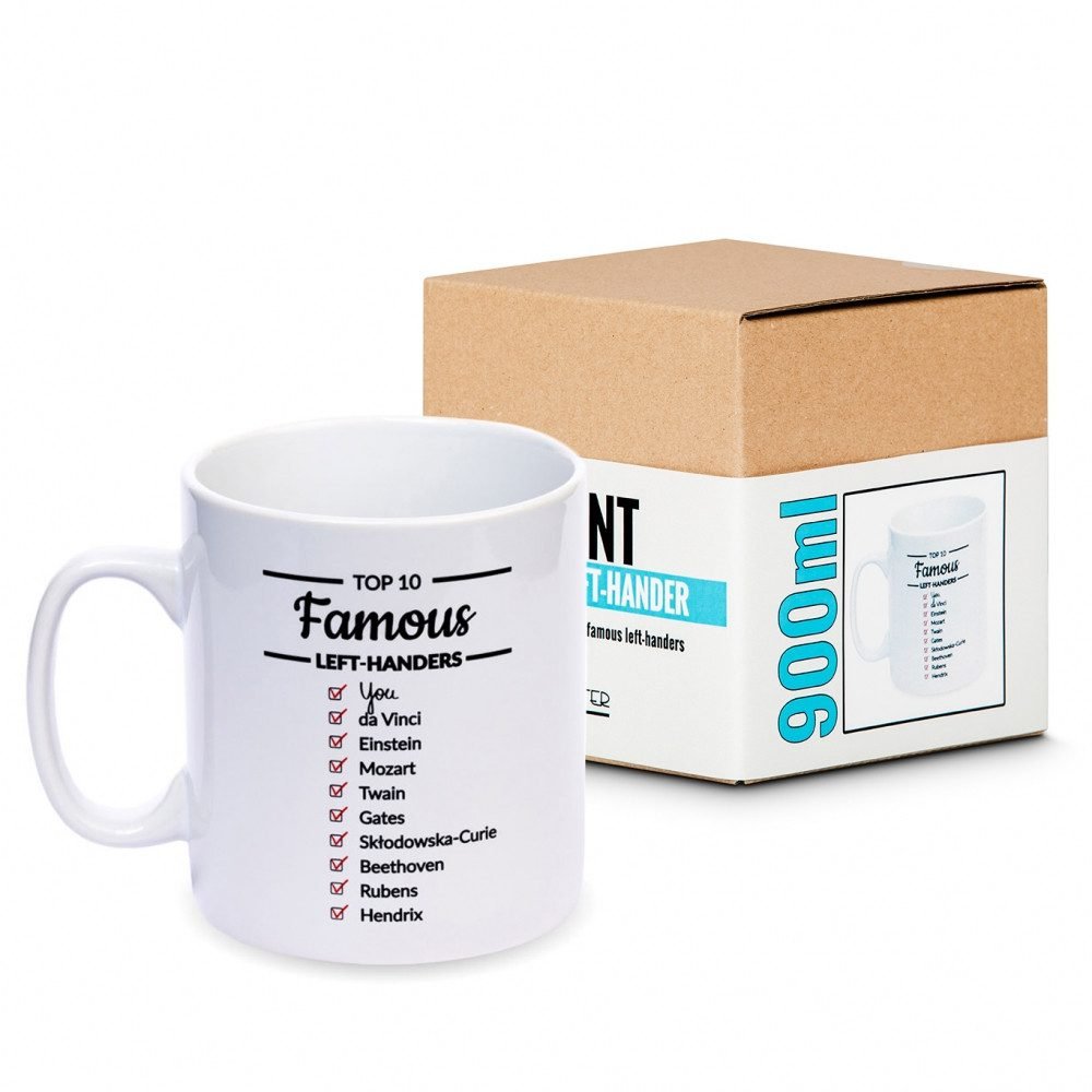 Divovski proizvod koji ostavlja ogroman dojam. Jednostrani tisak. Natpis na proizvodu: Top 10 poznatih ljevaka. Materijal: Keramika. Dimenzije: 900 ml (kapacitet). Sigurno za perilicu posuđa. Pogodno za kontakt s hranom. Operite proizvod prije prve upotrebe.