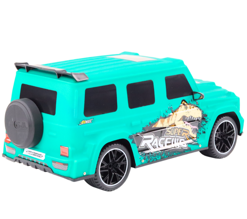 Naš se automobil ističe ne samo svojom elegantnom zelenom bojom, već također s jedinstvenom grafikom dinosaura sa strane, koja dodaje karakter i čini ga jedinstvenim. Zahvaljujući realističnim prednjim svjetlima, zabava se nastavlja čak i kad padne mrak.