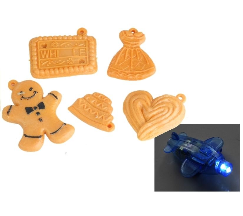 Svi slatkiši izrađeni su od atestiranog, ekološki prihvatljivog plastičnog materijala. Igračka se napaja iz 3 AA 1,5V baterije, nisu isporučene.