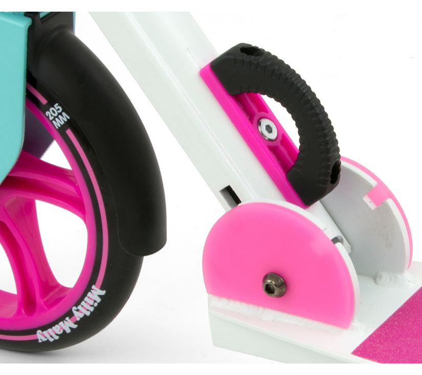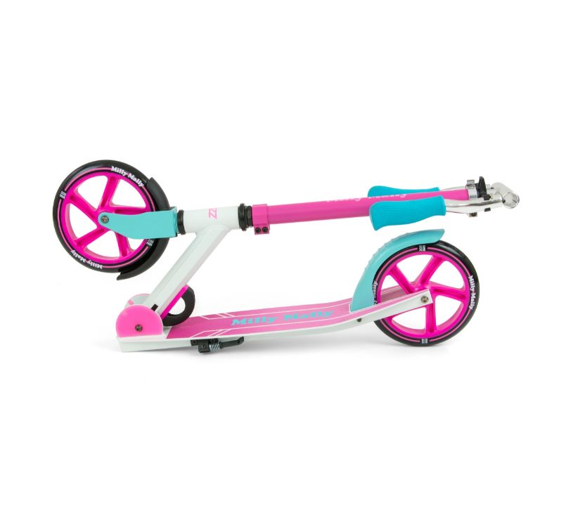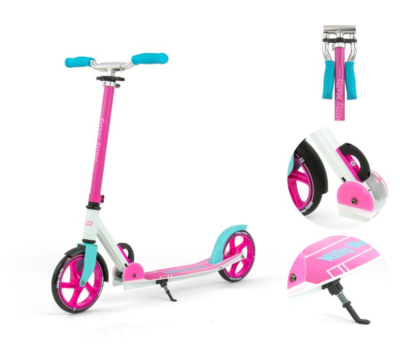 Romobil Buzz savršen je za aktivnosti na otvorenom za stariju djecu i odrasle. Skuter je izrađen od visokokvalitetnog aluminija, što ga čini izdržljivim i laganim. Udoban upravljač podesive visine koji omogućuje romobilu da raste s vozačem. Dva branika štite od prskanja, osim toga, stražnji blatobran se istovremeno koristi za kočnice. Neklizajuća površina platforme pruža sigurnost tijekom korištenja skutera.