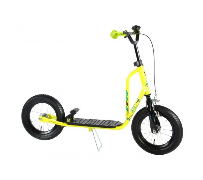 Romobil ima moderan i čvrst okvir, čvrste gume i nožnu kočnicu na stražnjem kotaču. Skuter ima i ručnu kočnicu. Upravljač je podesiv po visini.