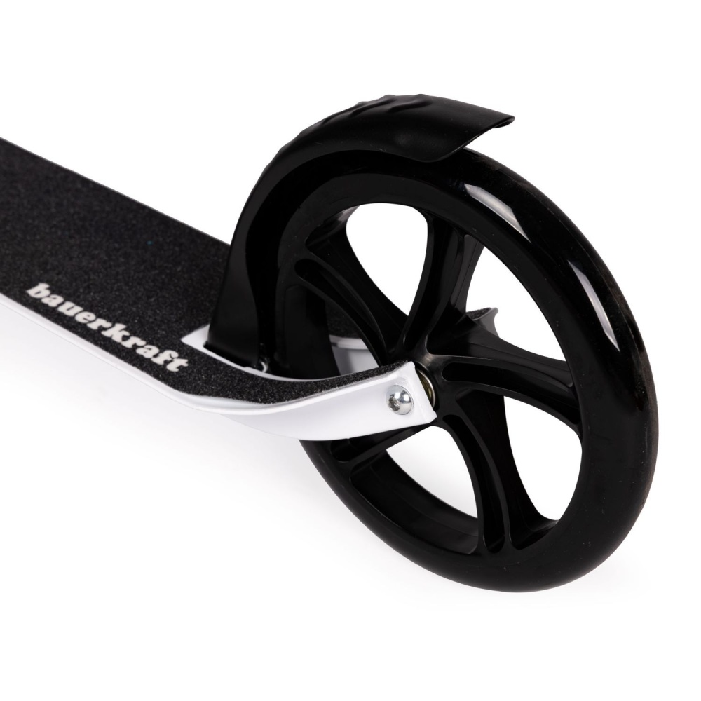 Gradski romobil savršen je izbor za putovanje u školu ili rekreativne vožnje po gradu. Zahvaljujući velikim kotačima i sustavu ovjesa, izvrsno se ponaša na asfaltnim cestama, pločnicima i biciklističkim stazama. Prednji amortizer s oprugom smanjuje vibracije, povećavajući udobnost vožnje čak i na neravnim površinama. Praktični nožni oslonac omogućuje vam sigurno parkiranje romobila bilo gdje bez rizika od prevrtanja. Stražnji kotač s blatobranom ne samo da poboljšava njegov izgled, već najvažnije štiti odjeću od prskanja vode ili blata. Vjerujte provjerenoj konstrukciji koja na siguran način podržava svakodnevne aktivnosti vašeg djeteta.