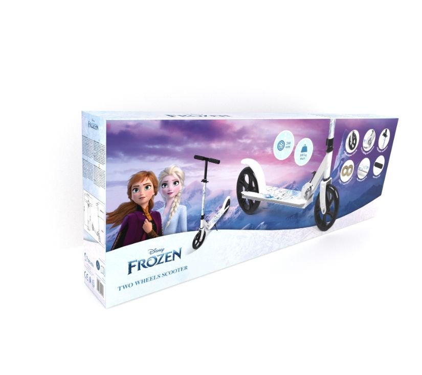 Dječji romobil na dva kotača savršen je za igru na otvorenom. Šareni likovi iz Disneyjevih crtića učinit će vožnju zabavnom za vaše dijete. Veliki raspon podešavanja volana olakšava vožnju većoj ili manjoj djeci. Gumene ručke povećavaju udobnost, platforma je ojačana neklizajućim materijalom koji štiti od klizanja. Poliuretanski kotači povećavaju amortizaciju prilikom vožnje po neravnim površinama, a visokokvalitetni ležajevi ABEC-7 osiguravaju glatku vožnju. Romobil ima nožnu kočnicu za povećanu sigurnost i jednostavan praktičan sustav preklapanja.