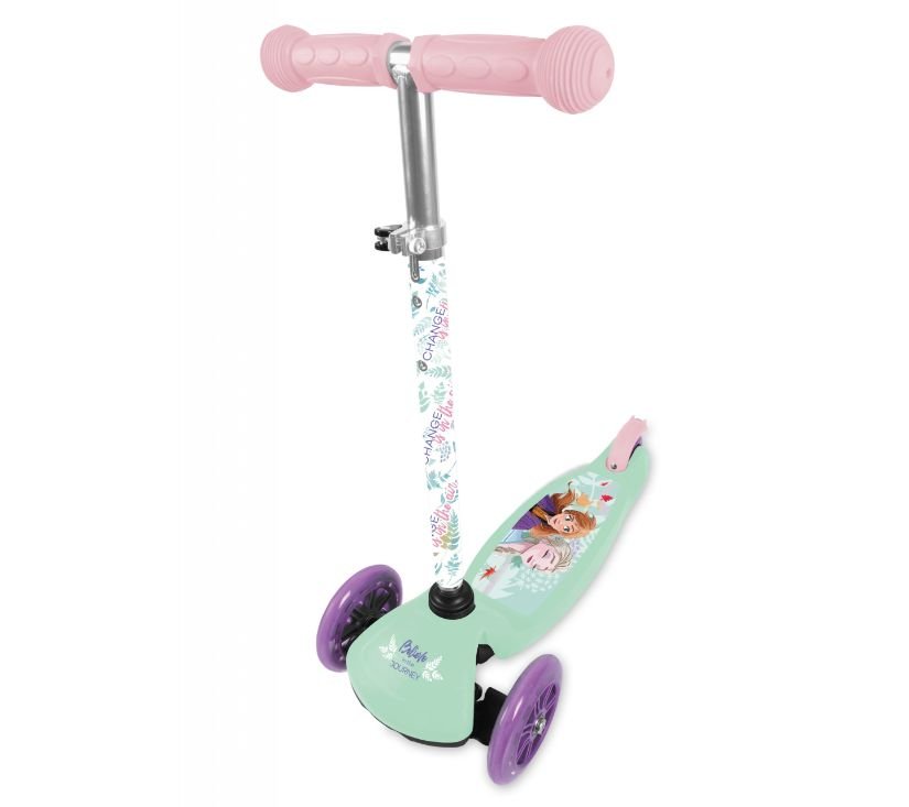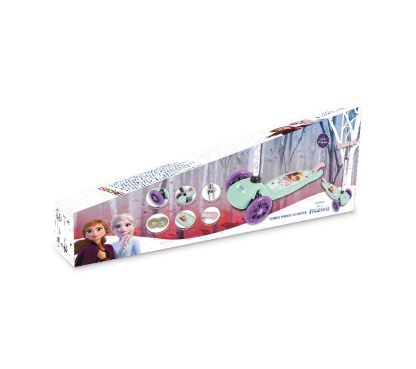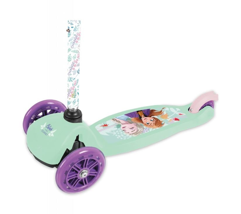 Romobil je ukrašen omiljenim likovima iz Disneyjevih crtića, savršeno razvija dječji osjećaj za ravnotežu. Zahvaljujući podesivoj visini volana namijenjen je i manjoj i starijoj djeci. Jedinstveni upravljački mehanizam omogućuje djetetu da sigurno balansira tijekom vožnje. Ima široko ojačano postolje s neklizajućom površinom, konstrukcija je vrlo izdržljiva. Poliuretanski kotači povećavaju amortizaciju pri vožnji po neravnim površinama, a kvalitetni ležajevi ABEC-7 osiguravaju glatku vožnju. Stražnja nožna kočnica povećava sigurnost, a posebno profilirane ručke povećavaju udobnost. Romobil ima jednostavan sustav preklapanja.