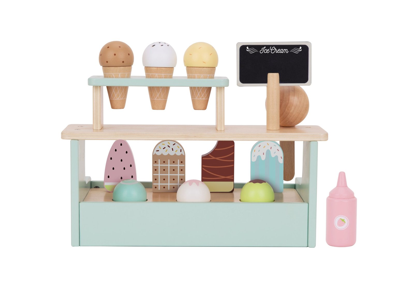 Drveni štand za sladoled marke Tooky Toy savršen je prijedlog za djecu koja vole kreativnu igru. Ovaj set ne samo da je savršen za igranje dućana, gdje se djeca mogu pretvarati da su prodavači sladoleda , već je i fantastičan dodatak za opremanje dječje kuhinje . Njegova izvrsna kvaliteta izrade , šarmantne boje i praktičnost jamče da će djeca uživati mnogo sati kreativna igra . Set uključuje drveni stalak za sladoled u prekrasnim pastelnim bojama, sladoled na štapiću , napolitanke i kuglice za sladoled spojene magnetom, žlicu za sladoled i jelovnik.