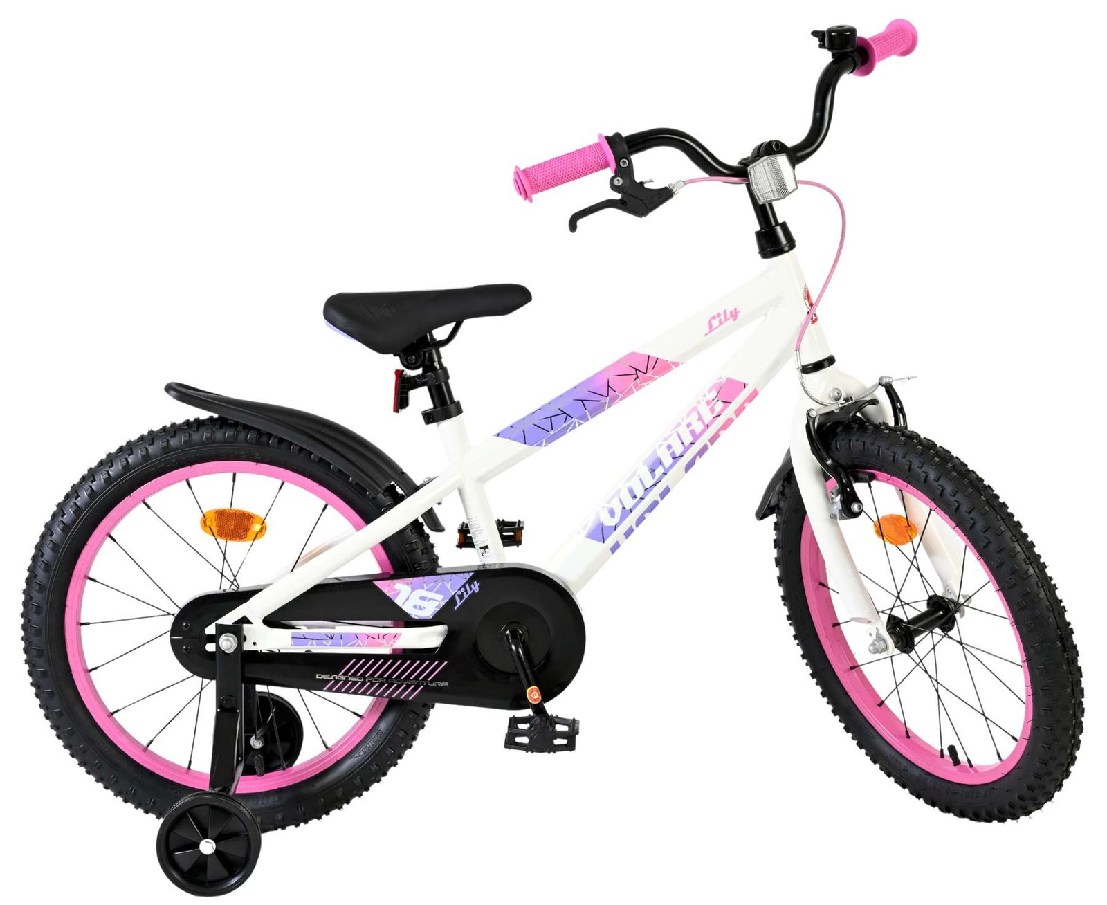 Dječji bicikl Volare Lily od 18 inča prekrasan je bicikl za mlade djevojke koje vole voziti sa stilom. Svojom svježom bijelom bojom, ljubičastim i ružičastim detaljima te upečatljivim ružičastim obručima i upravljačem, ovaj bicikl zaista privlači poglede.