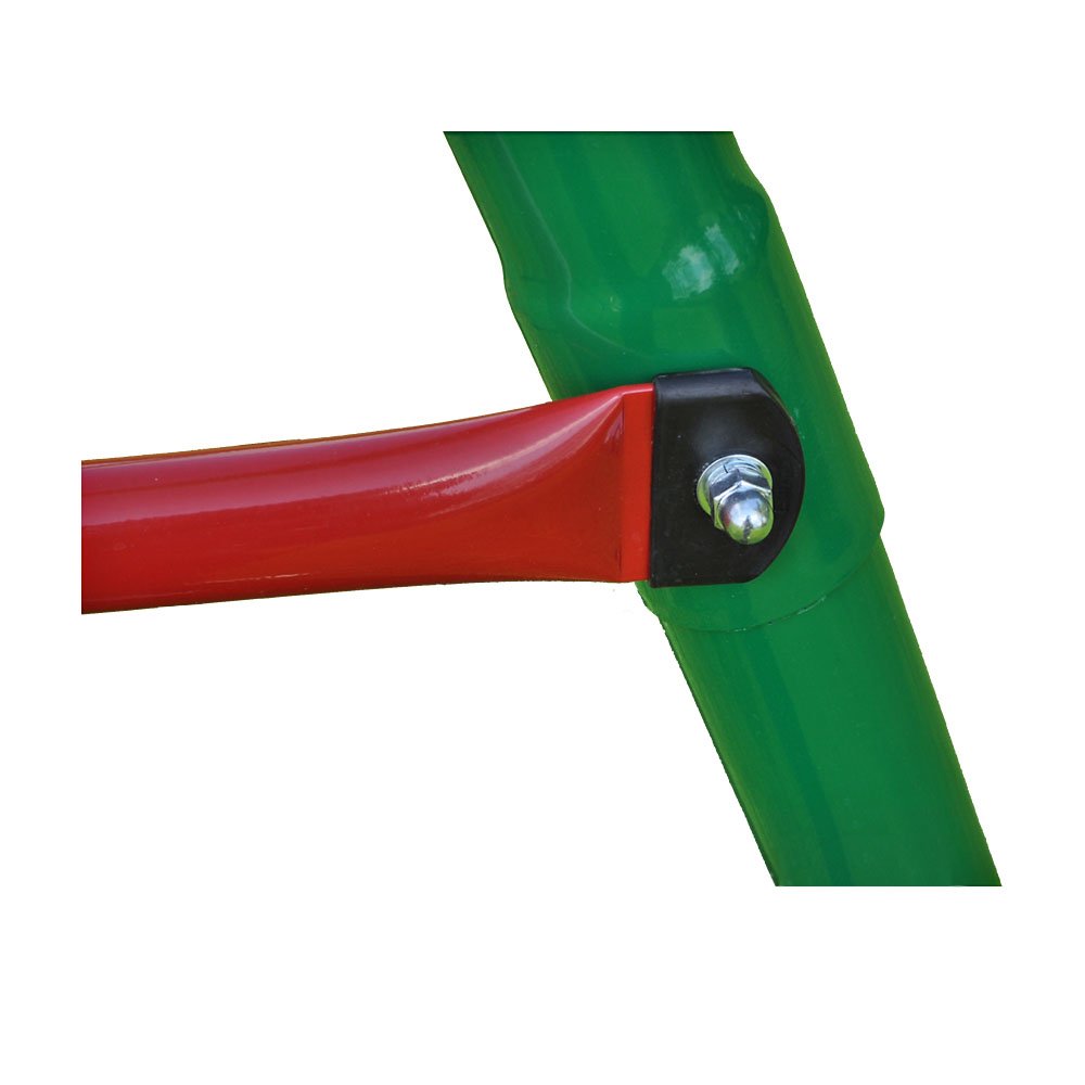Igralište je izrađeno od čeličnih cijevi premazanih visokokvalitetnom praškastom bojom, što osigurava trajnost i otpornost na vremenske uvjete. Konstrukcija je stabilna i sigurna, a pedantna završna obrada jamči dugogodišnju upotrebu.