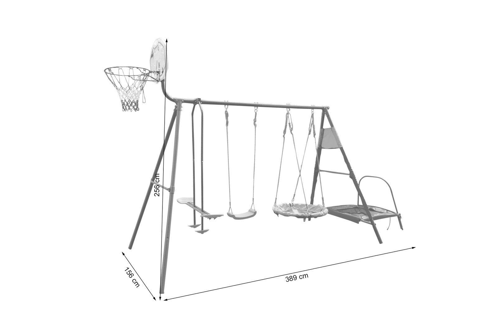 Igralište je izrađeno od čeličnih cijevi premazanih visokokvalitetnom praškastom bojom, što osigurava trajnost i otpornost na vremenske uvjete. Konstrukcija je stabilna i sigurna, a pedantna završna obrada jamči dugogodišnju upotrebu.