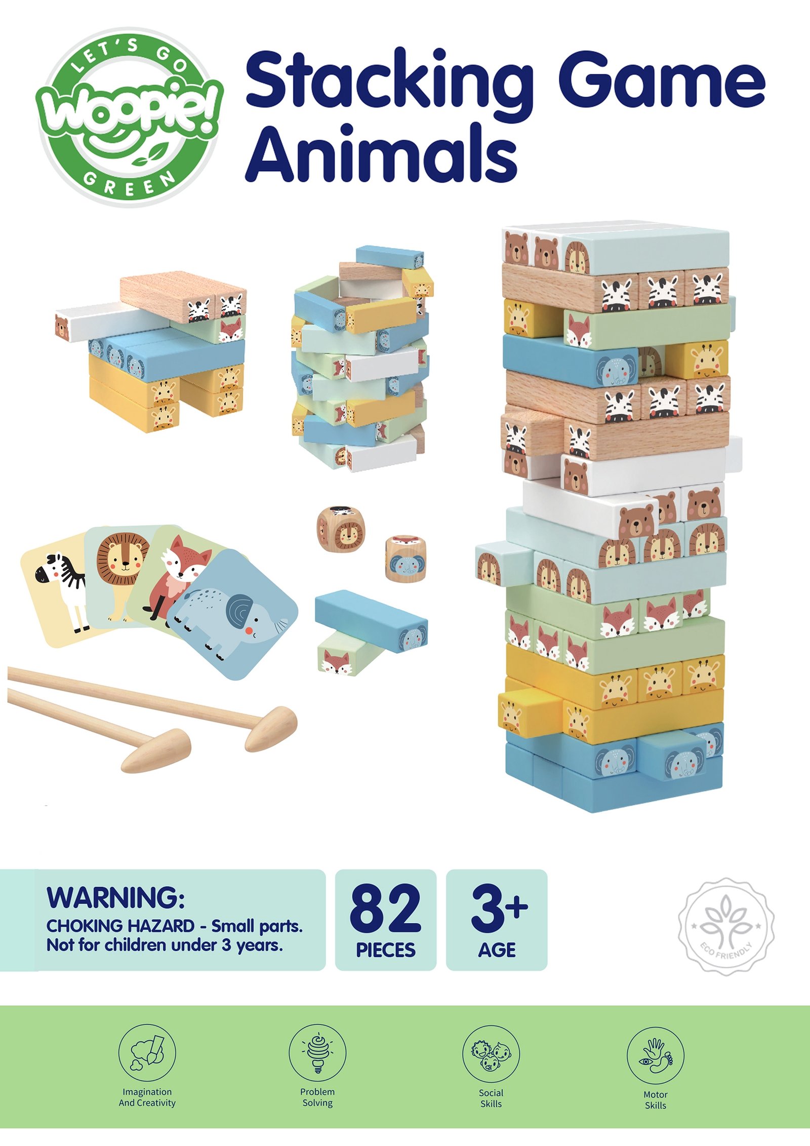 Wobble Tower iz WOOPIE GREEN -a jedinstvena je arkadna igra za djecu od 3 godine koja ne samo da pruža izvrsnu zabavu, već i podupire njihov razvoj. Set se sastoji od 82 elementa, izrađen od visoko kvalitetnog drva, ekološkog, 100% sigurnog za okoliš i vašeg mališana, u nježnim pastelnim bojama koje privlače poglede i potiču maštu. Drvena konstrukcija čini igračku izdržljivom i savršenom za male ruke. Dijete može slagati razne kombinacije, što osigurava duge sate kreativne igre, a ekološki materijali potpuno su sigurni za djecu i okoliš.