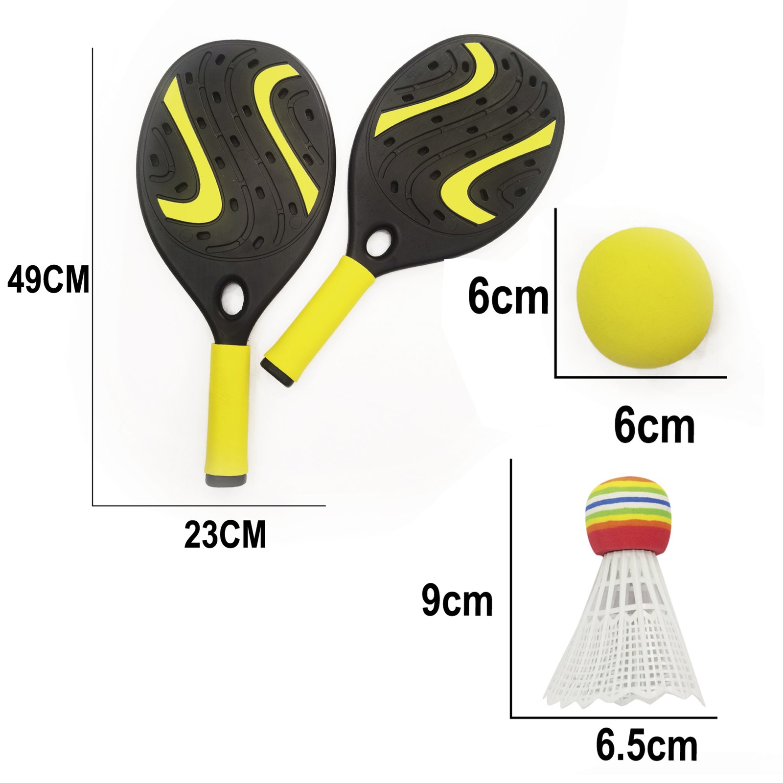 Set reketa brenda WOOPIE odlična je ideja za aktivno provođenje vremena u toplim danima. Prekrasan uzorak i dobra kvaliteta garancija su dobre zabave! Set uključuje dva izdržljiva reketa, lopticu od meke spužve i petlju – zahvaljujući tome možete igrati razne sportske igre zajedno s WOOPIE reketima! Za udoban transport i skladištenje, set je upakiran u kvalitetnu torbicu s patentnim zatvaračem.