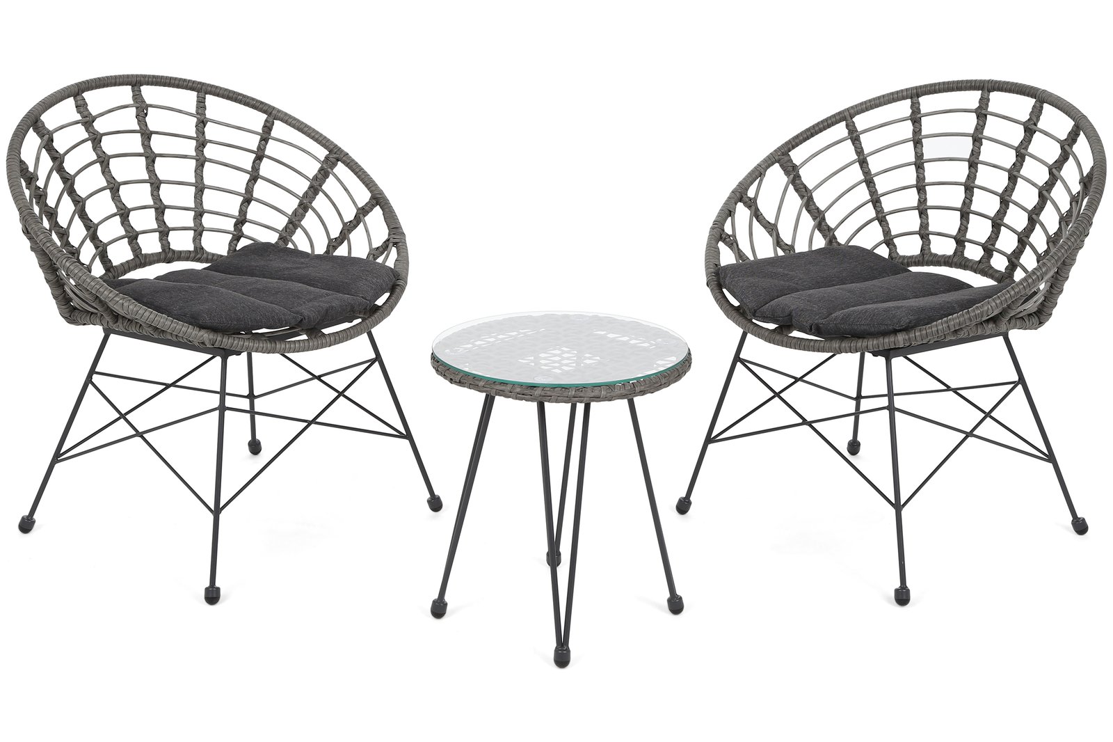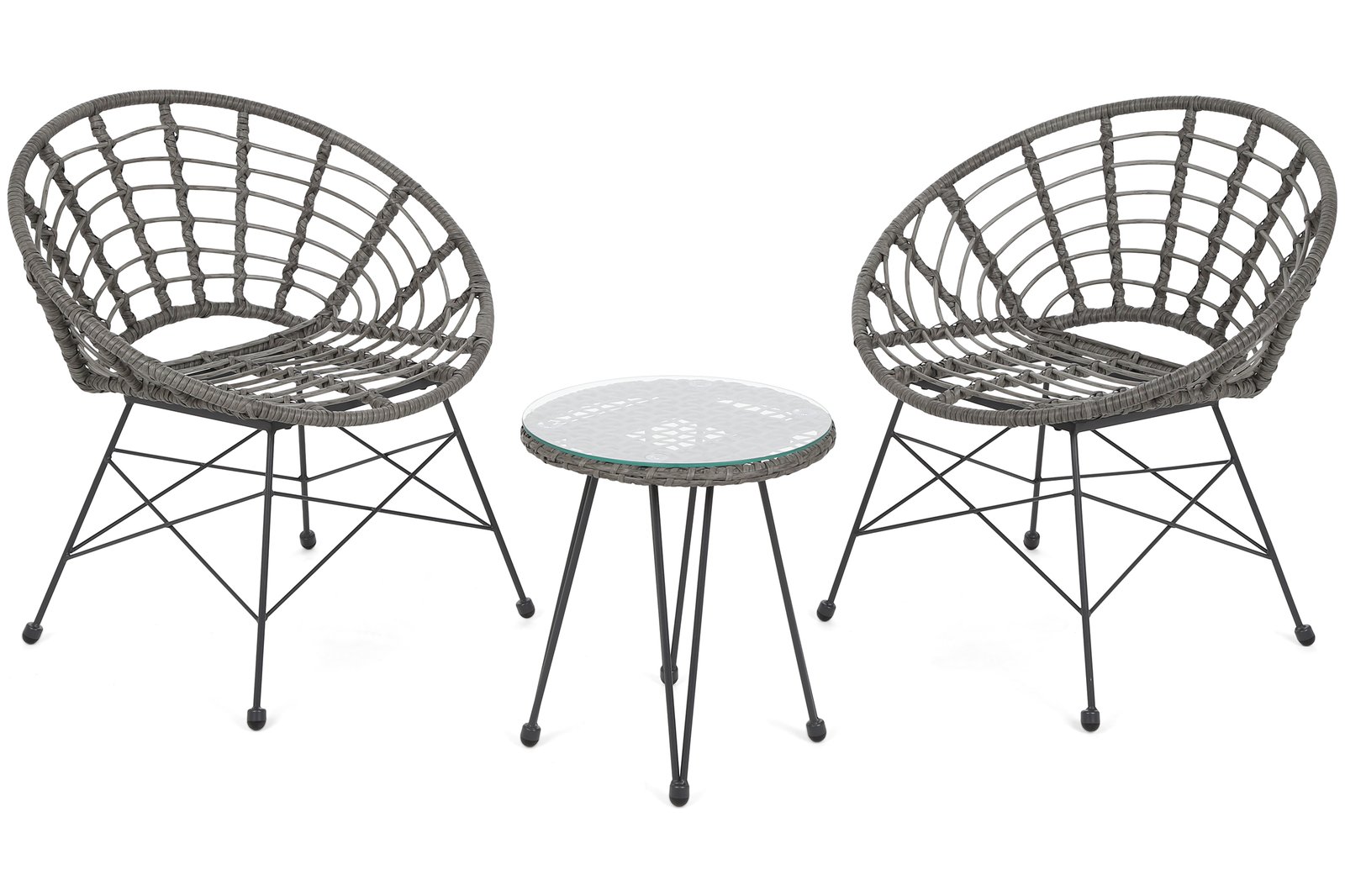 Set namještaja od ratana Zanzibar kompaktan je i elegantan set, savršen za malu terasu, balkon ili vrt. Sastoji se od dvije fotelje i malog stola, izrađenih od ratana otpornog na vremenske uvjete i čelika s praškastim premazom. Pruža udobnost i opuštanje na svježem zraku.