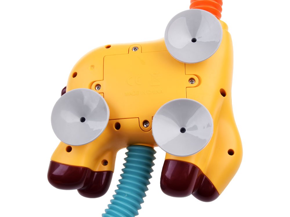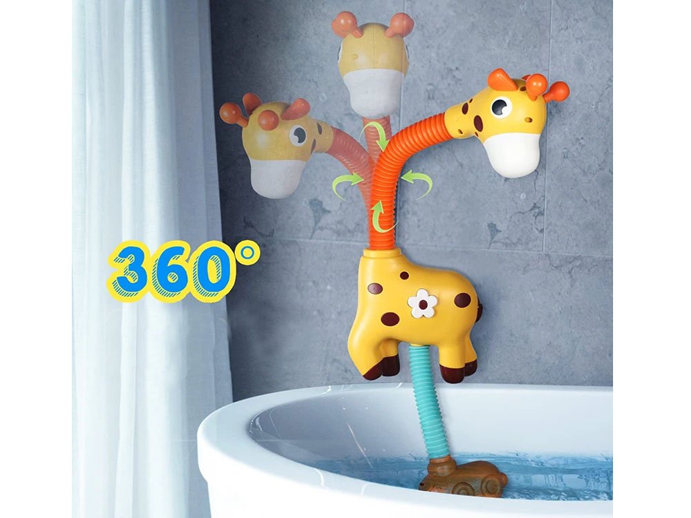 Na dnu igračke nalazi se pumpica koju treba staviti u kadu tako da bude uronjena u vodu. Nakon uključivanja gumba u obliku cvijeta koji se nalazi na trbuhu žirafe, pumpa će povući vodu koja će početi teći iz rupa stavlja u usta žirafe, stvarajući blagi mlaz tuša.